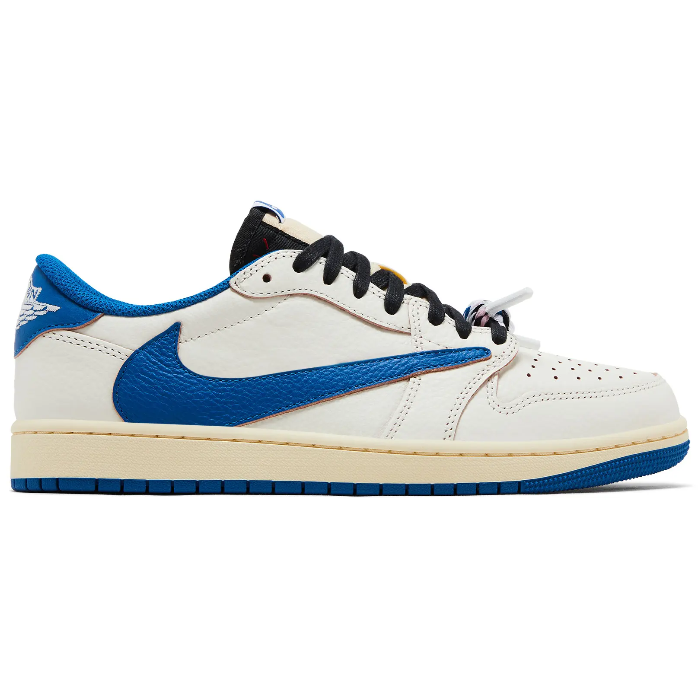 The Air Jordan 1 Retro Low OG ‘UNC’ continues a tradition of classic Jordan models draped in colours that pay homage to Michael Jordan’s alma mater. This pair utilizes a leather upper that combines a white base with contrasting black accents on the forefoot overlay and signature Swoosh. The heel panel is finished in Dark Powder Blue, matching the rubber outsole and woven Nike Air tongue tag. A retro Wings logo on the heel tab maintains the shoe’s OG aesthetic.