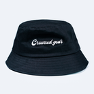 The front features a white embroidered “Crowned Gear” script logo, adding a subtle contrast that elevates the all-black design. With its classic silhouette and durable build, this bucket hat transitions seamlessly from casual city looks to outdoor fits.