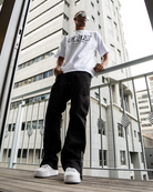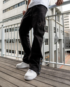 The Palazzo Black Denim is FLUX Luxury Couture’s modern reinterpretation of classic wide-leg tailoring, engineered for the streets. Crafted from jet-black denim, this silhouette flows effortlessly with a relaxed drape while maintaining sharp structure.