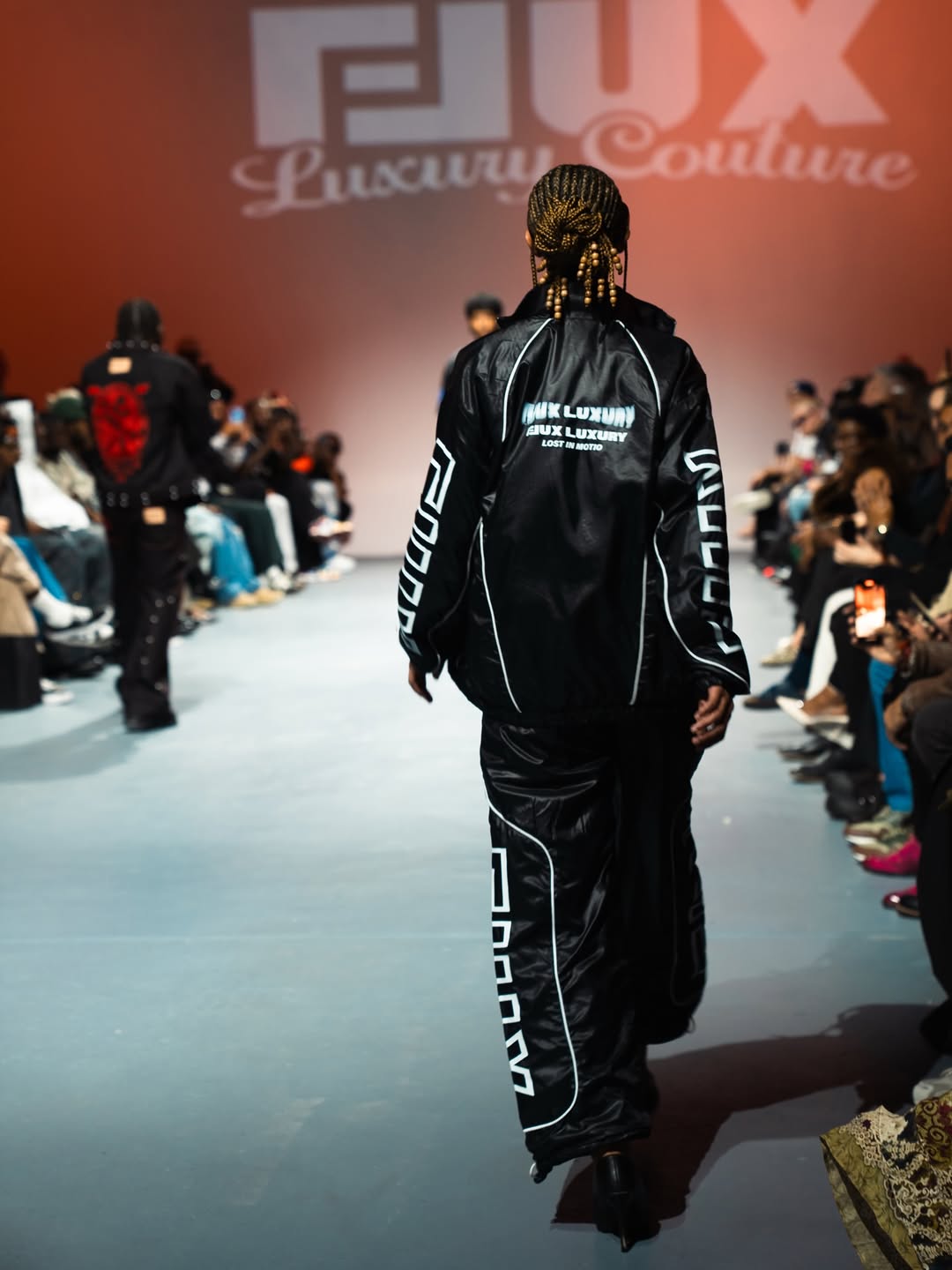 A runway statement engineered for movement, the Lost In Motion Black Tracksuit Set embodies FLUX Luxury Couture’s fusion of technical design and elevated streetwear. Debuted at SA Menswear Week SS26, this set delivers a bold silhouette with a performance-driven edge.