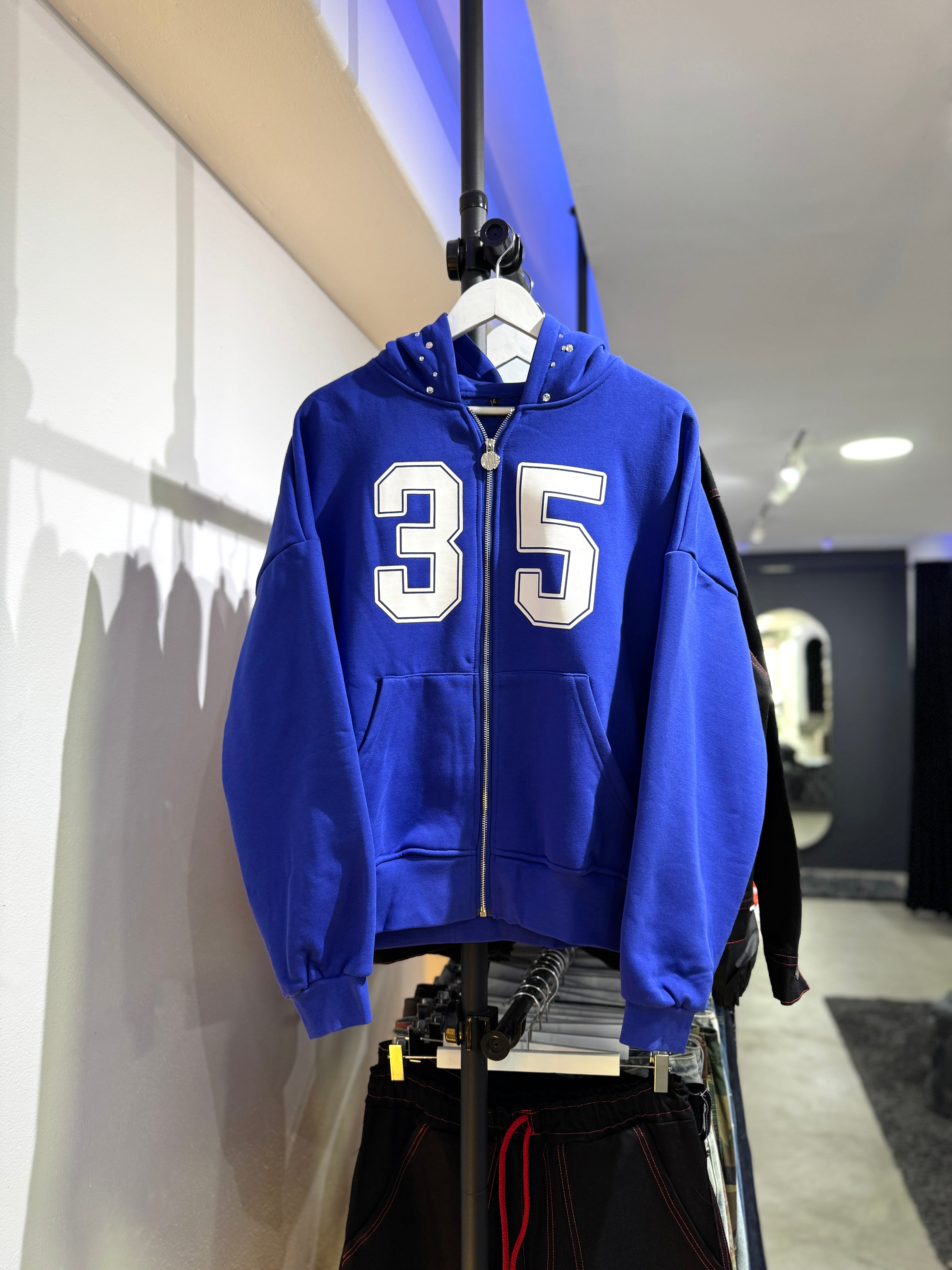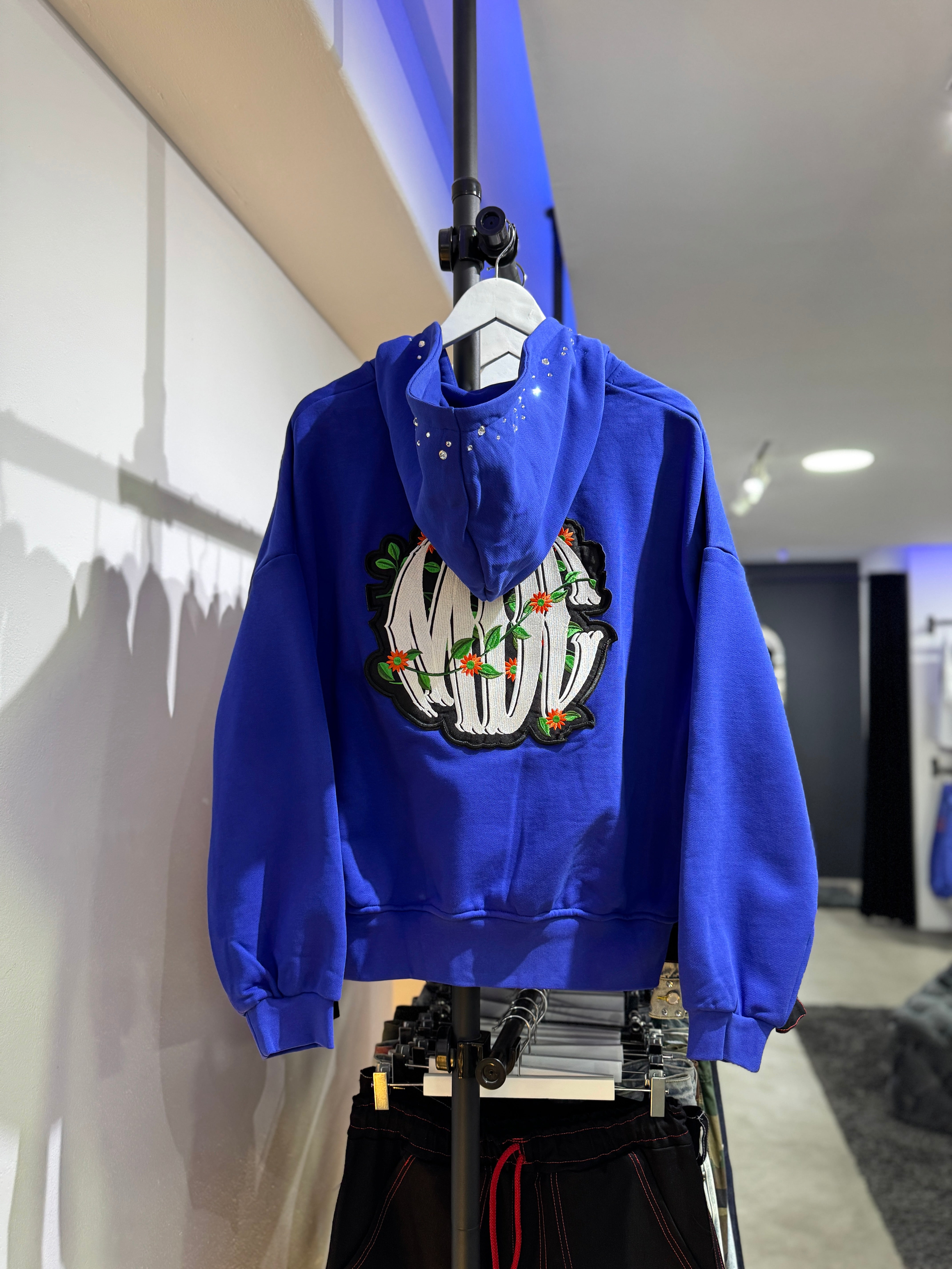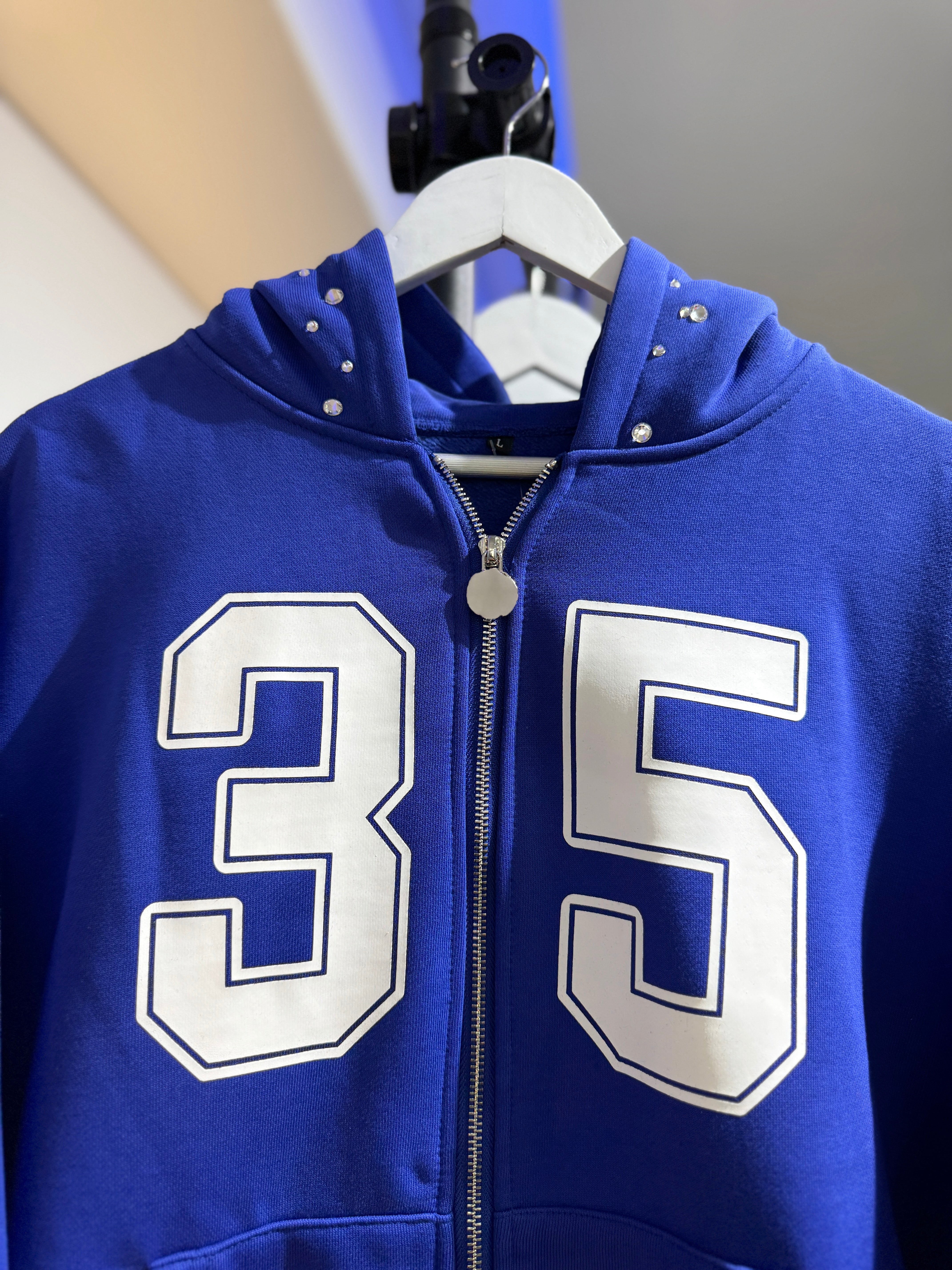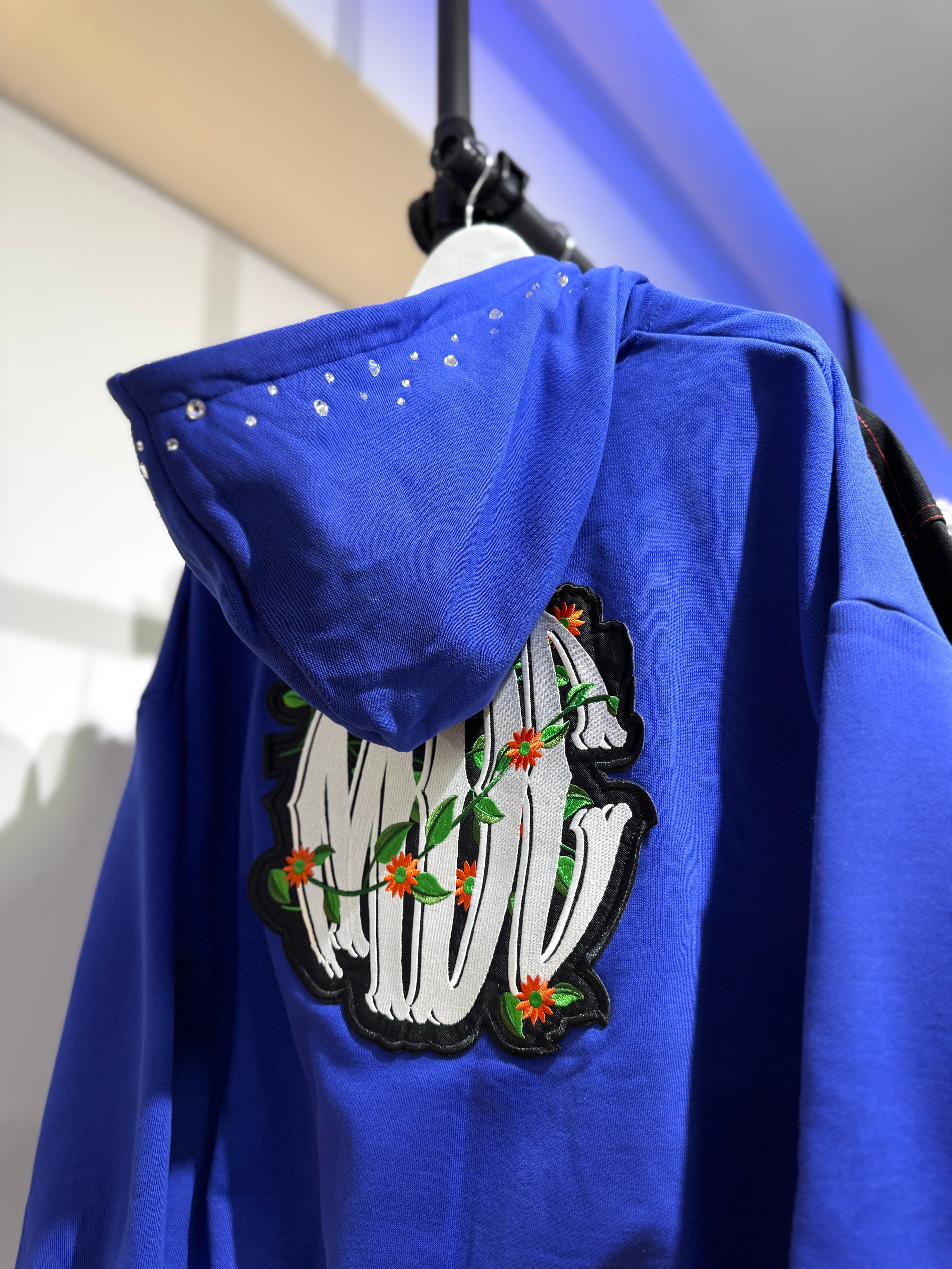 This 35 MDC Hoodie features a crystal-embellished hood and the MDC logo on the back. Stay stylish with this unique printed hoodie.
