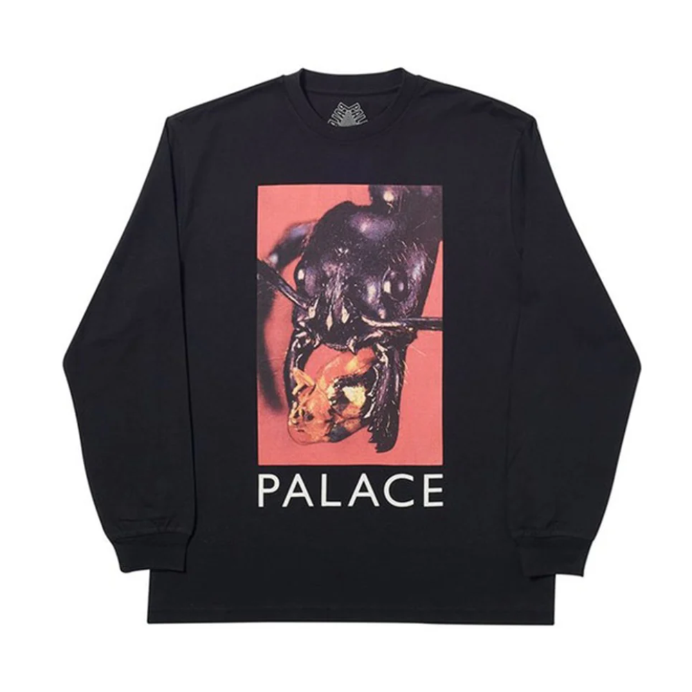 Crafted from premium cotton for everyday comfort, it comes in both black and white colourways, finished with ribbed cuffs and Palace’s graphic logo beneath the artwork. A must-have for fans of Palace’s disruptive design language, the Bug Munch tee turns a simple long sleeve into a gallery-worthy streetwear essential.