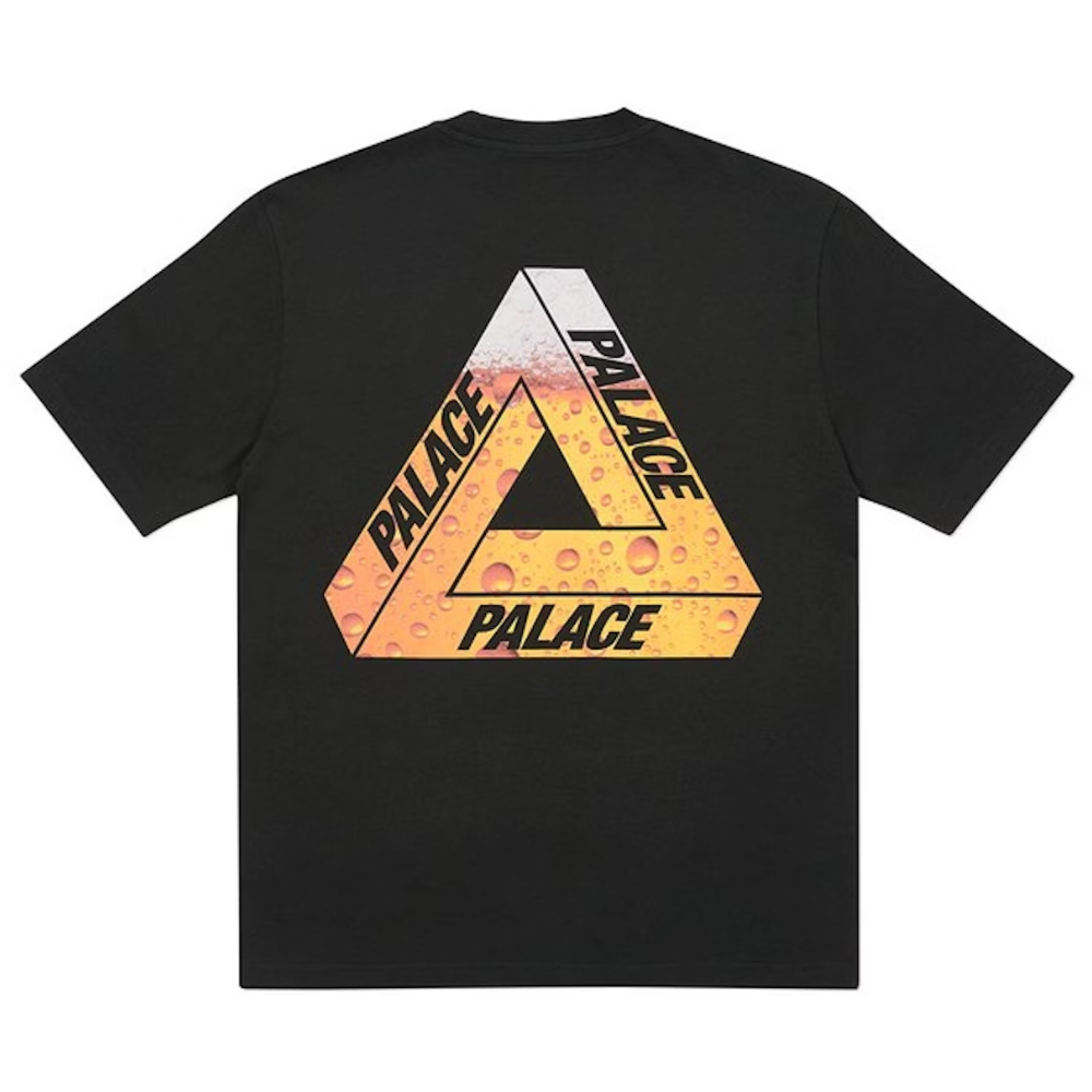 The Palace Tri-Lager T-Shirt 'Black' brings together streetwear attitude and playful pub-inspired energy. This edition of the iconic Tri-Ferg logo is reimagined with a beer glass effect, complete with realistic amber tones and bubble detailing that create the illusion of a freshly poured lager.