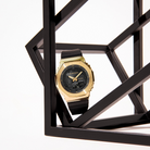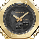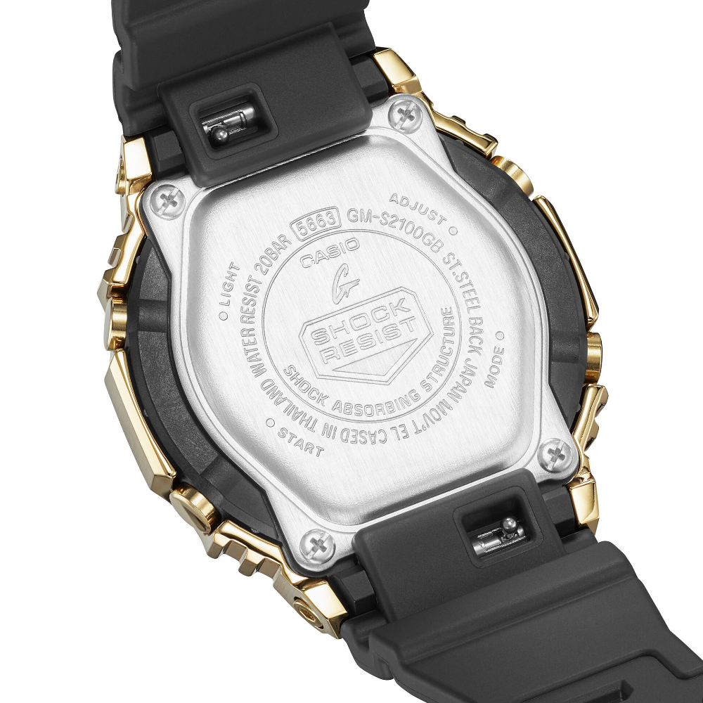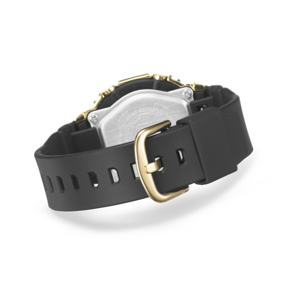 Go metal-clad with a gold-on-black G-SHOCK in a smaller, more compact profile. Finished in gold ion plating, the metal bezel says elegant luxe all the way. Buttons and buckle, also ion-plated in gold, are set against a black for a contrast that makes the metal truly shine. The luxury of gold paired with the strength of black in a shimmery beauty that is uniquely you.