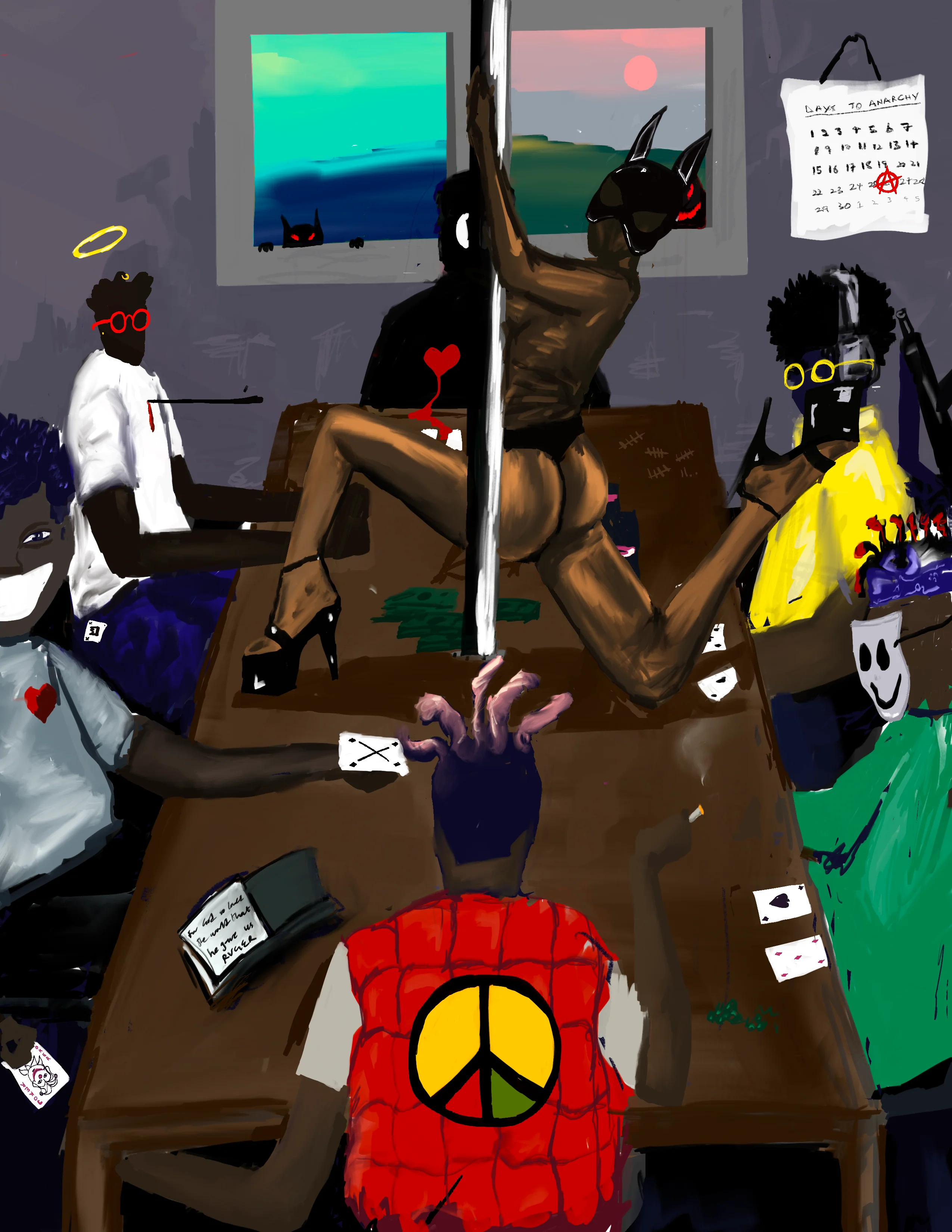 The ‘Days of Anarchy’ Limited Edition T-Shirt off the SS23 exclusive drop is a 100% silk button down T-Shirt. Based on true tales and characters, the vintage button down piece features an original RVGER artwork by UK based fast rising Nigerian artist named Amaremoelaebi, depicting themes around daily struggles as a rebellious youth with our signature elements reinterpreted in a more sophisticated way, crafted to perfection using the finest quality of 100% silk fabric.