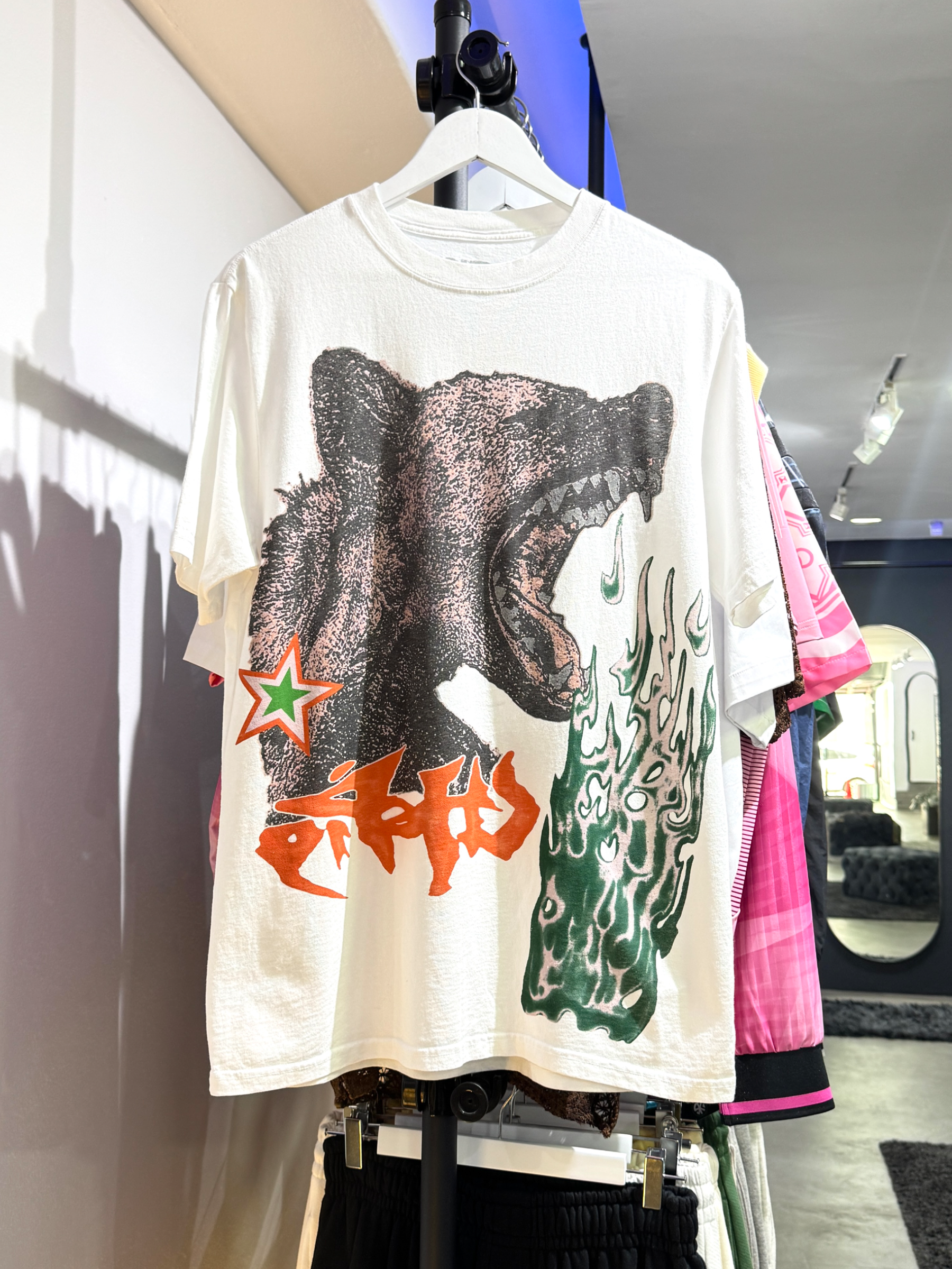 This rare Travis Scott UTOPIA Tour South Africa Exclusive T-Shirt celebrates the global impact of the artist’s long-awaited tour stop. Crafted from premium heavyweight cotton in a vintage white wash, the tee carries signature Cactus Jack design DNA — bold, chaotic, and unmistakably Travis.