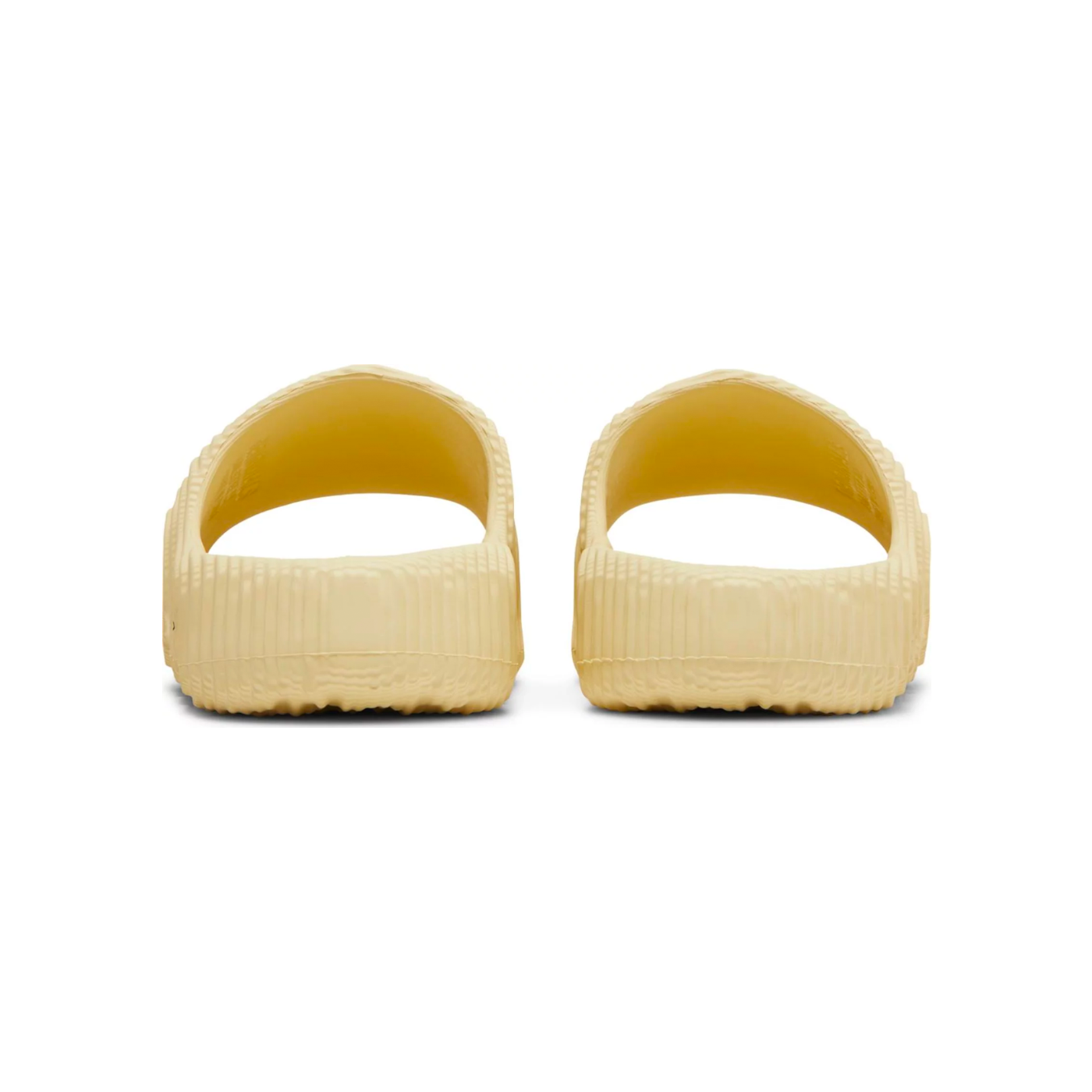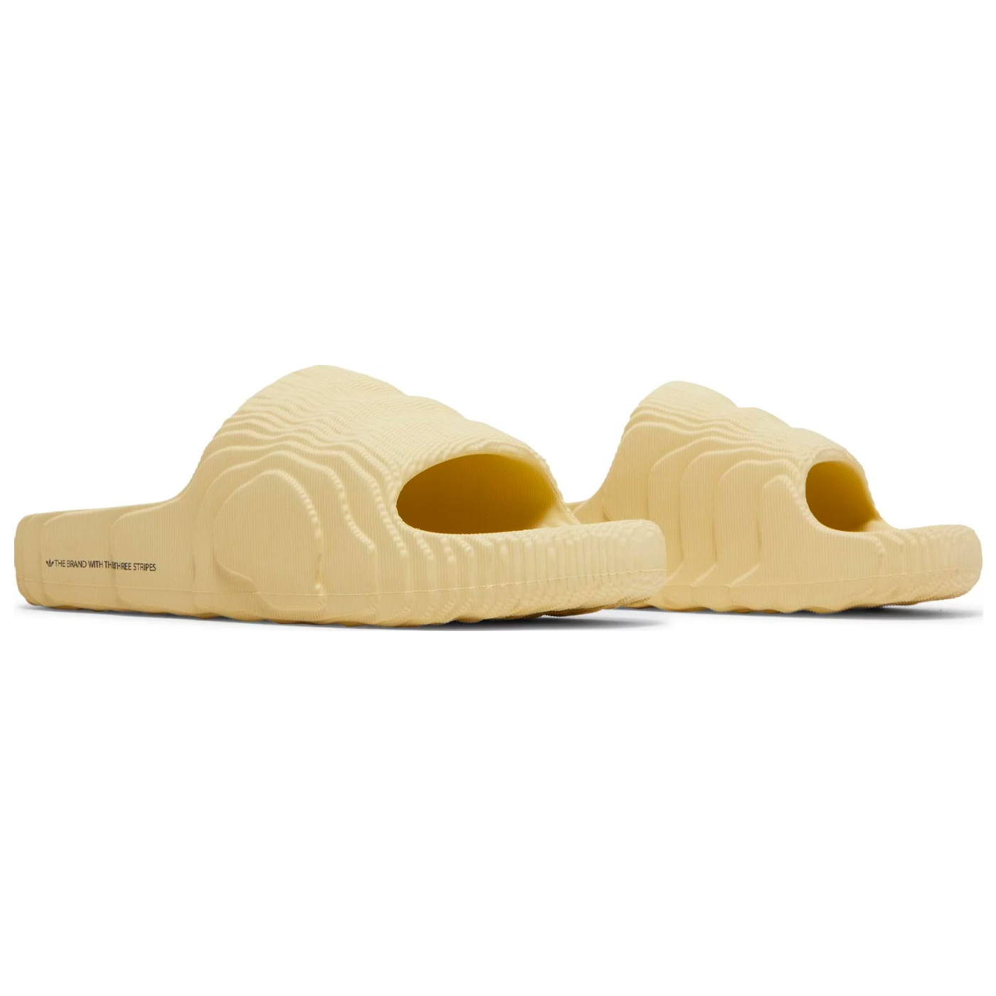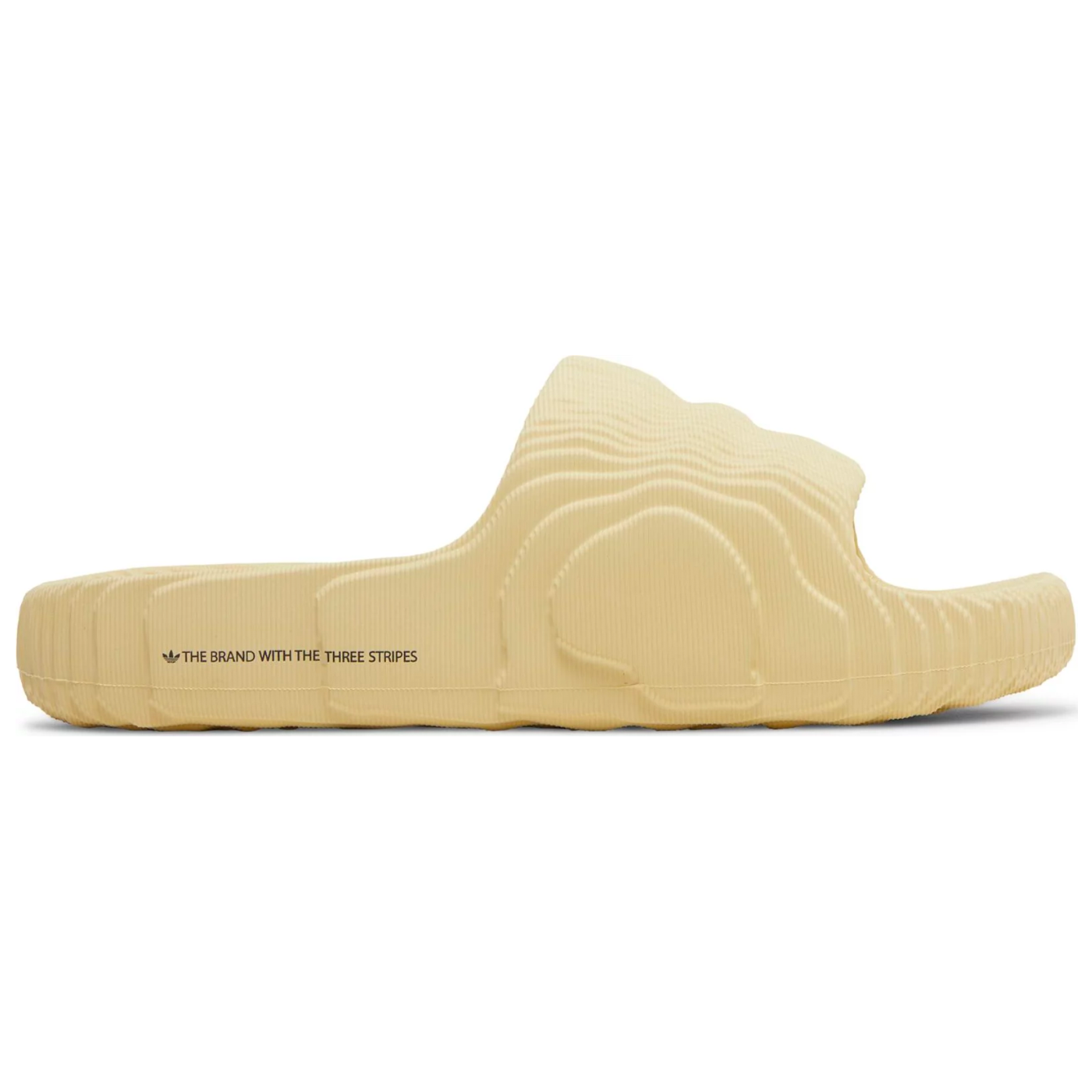 The adidas Adilette 22 Slide ‘Desert Sand’ delivers a futuristic take on the classic comfort sandal. Inspired by space exploration and 3D topography, the slip-on features wavy lines throughout the one-piece build, composed of EVA foam that contains plant-based content derived from sugarcane. A monochrome finish in a subtle cream hue is disrupted by printed text on the lateral midsole that reads ‘The Brand with the Three Stripes’ in black lettering.