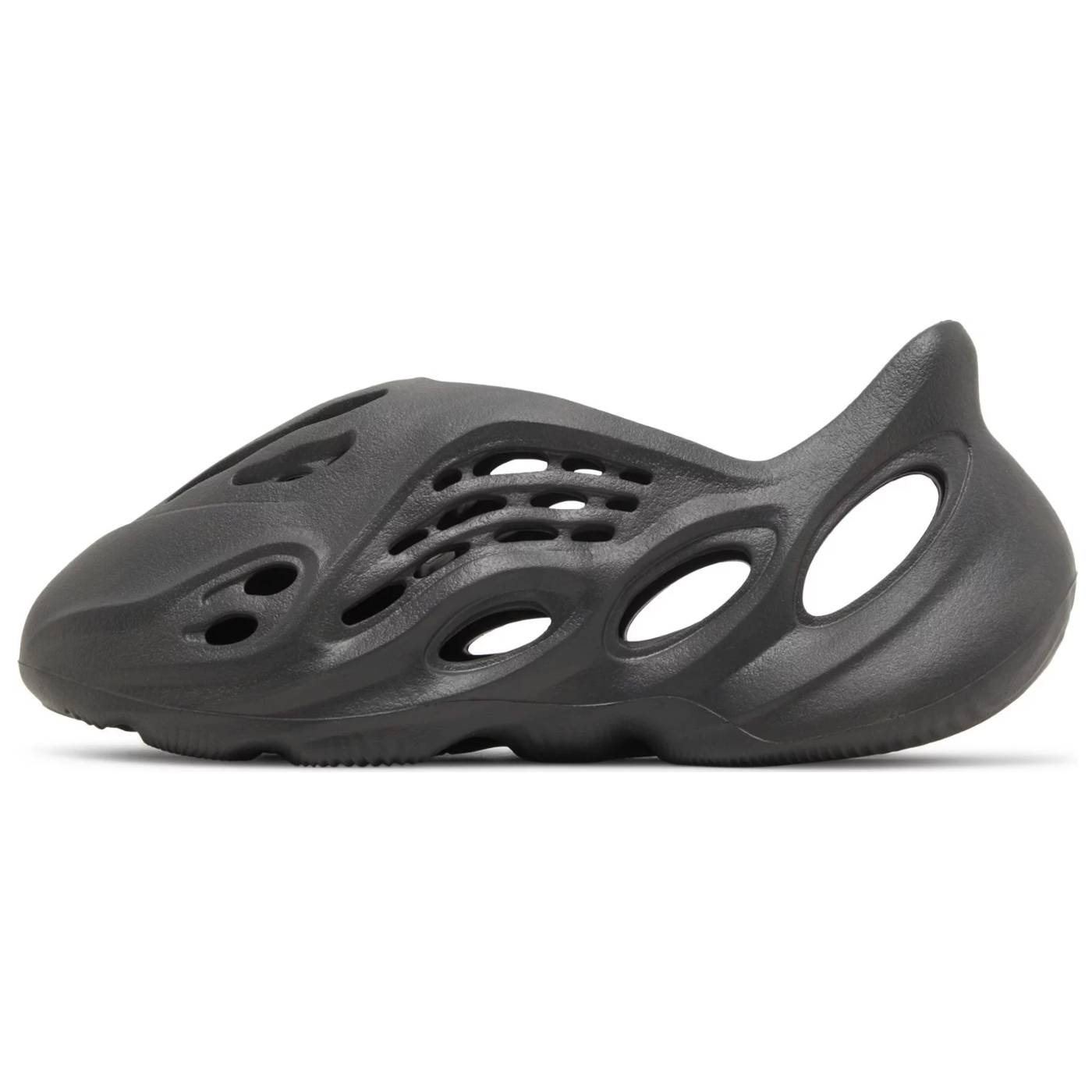 The adidas Yeezy Foam Runner ‘Onyx’ applies a sleek monochrome finish to the futuristic slip-on. Black injected EVA foam is utilised on the molded one-piece upper, featuring sculpted lines and a series of strategically mapped vents that allow for increased airflow. A contoured heel provides a secure fit, while the soft top layer of the footbed delivers step-in comfort. The lightweight build is underpinned by a wavy-traction outsole that offers sure footing on wet or dry surfaces.