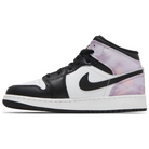 The Air Jordan 1 Mid SE ‘Zen Master’ showcases a tie-dye print in Amethyst Wave and Bleached Coral. The swirling pastel hues permeate textile overlays at the collar and heel, while the rest of the upper is constructed from smooth leather in contrasting white and black tones. Branding elements include a black leather Swoosh, a woven Jumpman tongue tag, and a black Wings logo imprinted on the lateral ankle. A traditional rubber cupsole packs encapsulated Air-sole cushioning in the heel for a smooth ride.