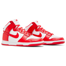The Nike Dunk High ‘University Red’ showcases classic colour blocking that recalls the iconic ‘Be True to Your School’ series from 1985. The high-top carries an all-leather upper that pairs a crisp white base with scarlet overlays at the forefoot and heel. The vibrant hue is repeated on the signature Swoosh, Nike-branded tongue tag, and mesh collar lining. Anchoring the sneaker is a traditional rubber cupsole, highlighted by white sidewalls and a grippy red rubber outsole.