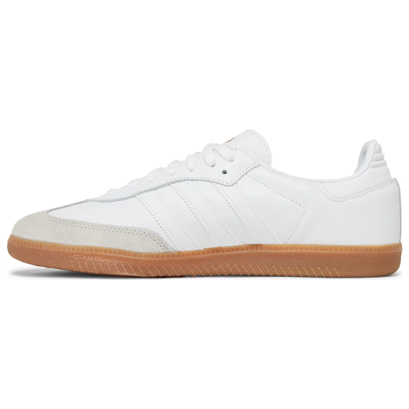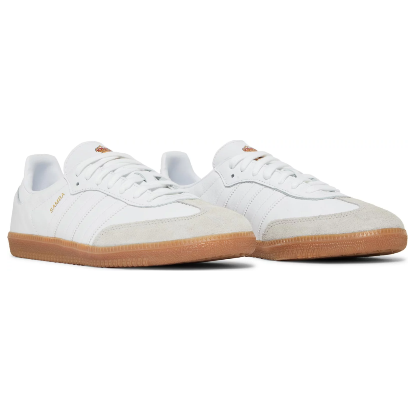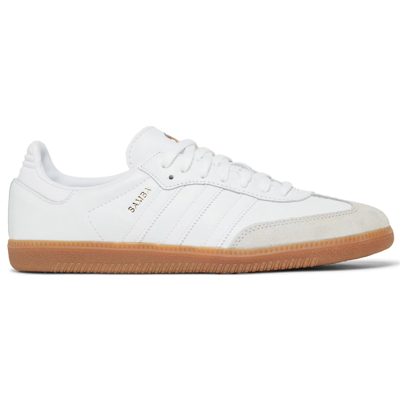 Show you follow football royalty. From their classic T-toe and serrated 3-Stripes to their ribbed heel counter, these adidas Samba shoes stand out in crisp white. A tribute to the mighty Real Madrid, they come with a printed club badge on the tongue. Lace them up and the smooth leather upper will keep you comfortable while you watch the action from the Santiago Bernabéu.