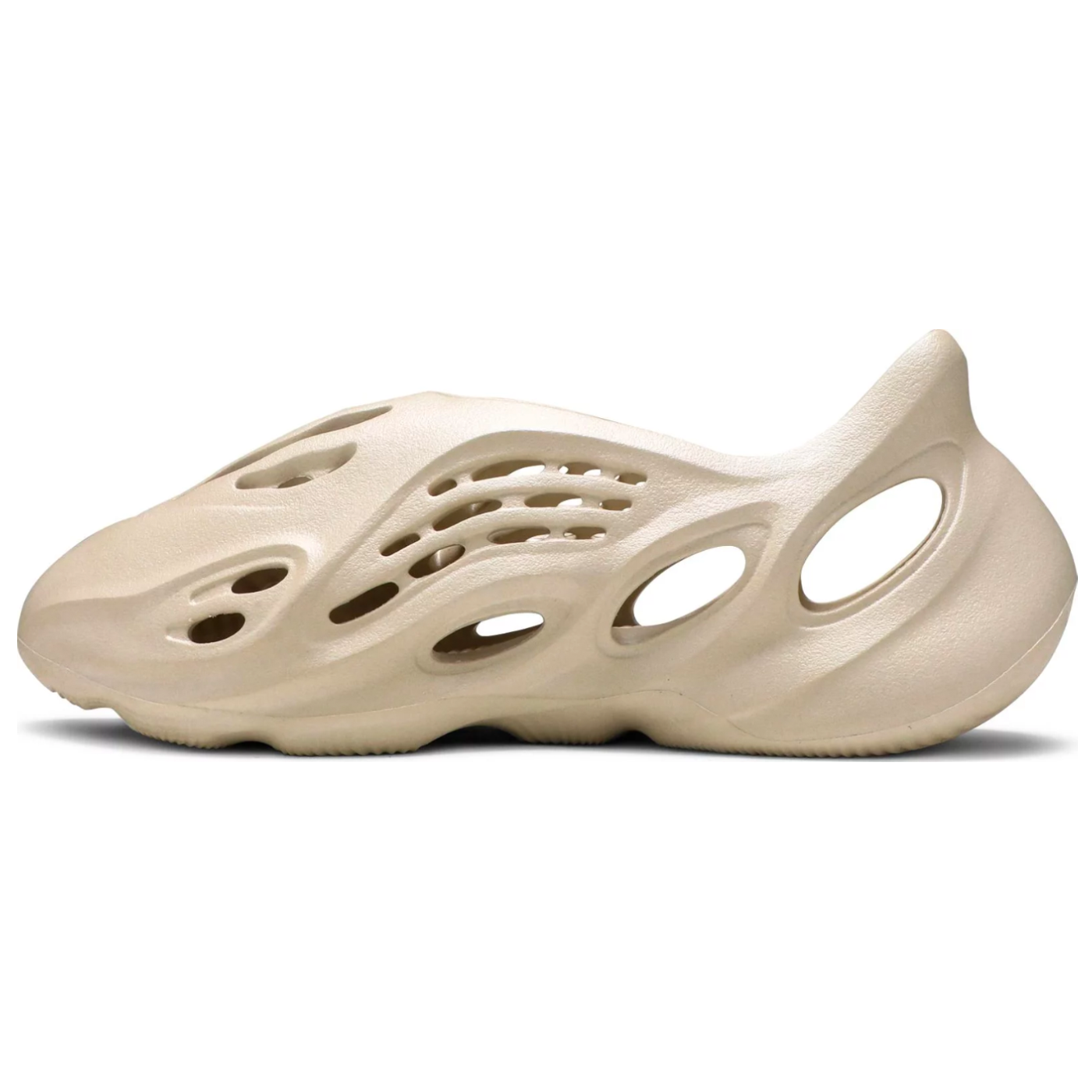 The adidas Yeezy Foam Runner ‘Sand’ complements its molded one-piece construction with an understated light tan finish. Built with EVA foam, the upper features sculpted lines and a series of mapped vents throughout the midfoot and vamp for enhanced breathability. A textured footbed keeps the foot locked in place, while the contoured outsole utilizes a wavy traction pattern for optimal grip. An adidas logo is stamped under the heel.