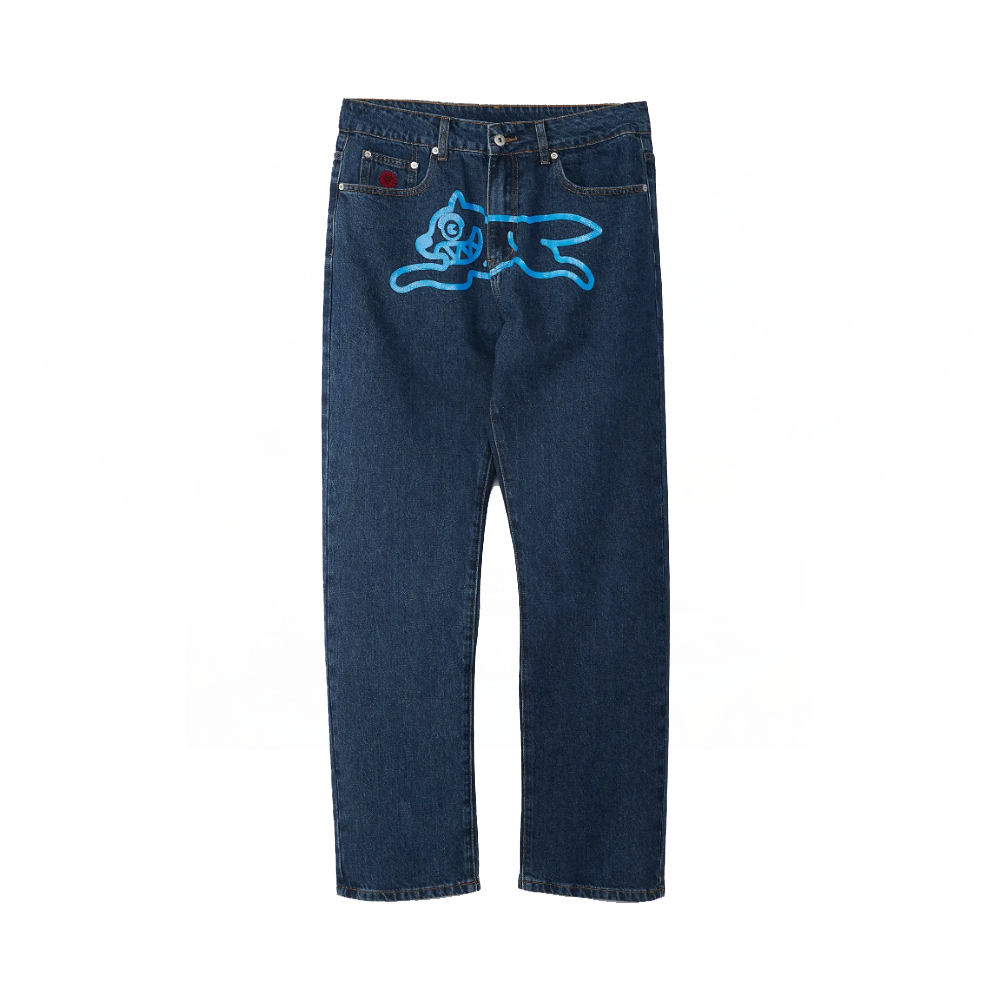 The Billionaire Boys Club Running Dog Denim Pants ‘Blue’ deliver a bold fusion of vintage-inspired denim with signature BBC streetwear attitude. Crafted from premium heavyweight indigo denim, the jeans feature the brand’s iconic Running Dog motif in a striking sky blue across the front — a hallmark of Pharrell Williams’ and NIGO®’s creative vision.