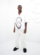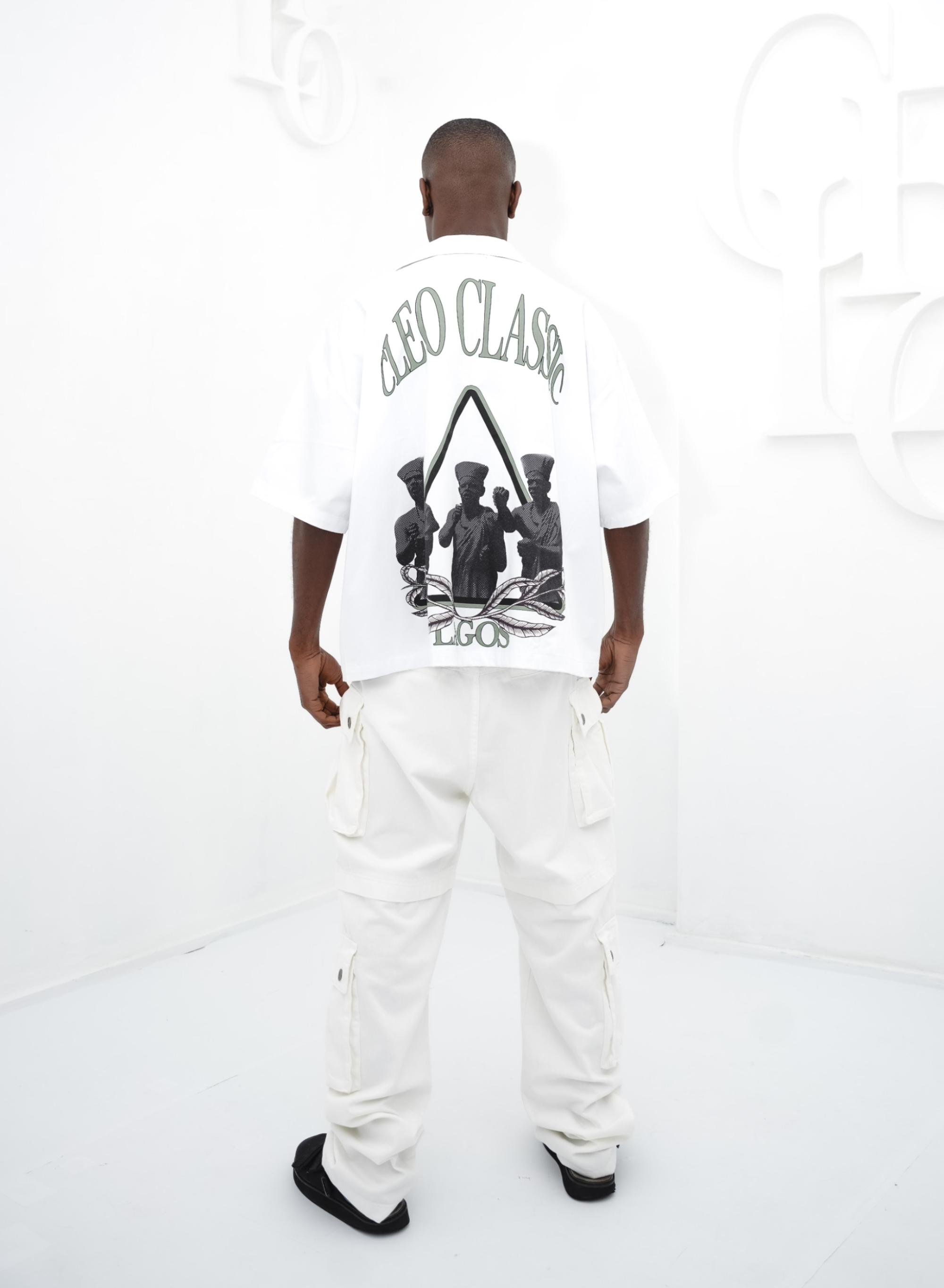Introducing the CLEO Classic Bowling Pants in White. A formal yet stylish pair of white pants made from 100% cotton with custom embossed CLEO buttons.