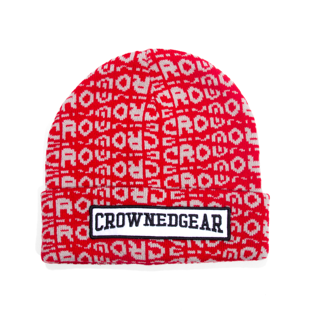 The CrownedGear Red Patterned Beanie captures attention with its bold monogram knit and unmistakable streetwear aesthetic. Designed in a vivid red and white colorway, the all-over CrownedGear pattern adds texture and visual depth, while the embroidered front patch gives the piece a polished finish.