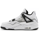 The Air Jordan 4 Retro GS ‘DIY’ treats the vintage mid-top to a blank-slate design, highlighted by a white leather upper with a series of contrasting black accents. They include the sneaker’s collar lining, Jumpman branding hits, and TPU eyelets and wings. Black piping on the midfoot and forefoot overlay echoes the pen-and-ink graphics on the quarter panel, which can be filled in with colours via a set of multi-hued markers. Light speckling dusts the midsole, featuring visible Air-sole cushioning under the heel.