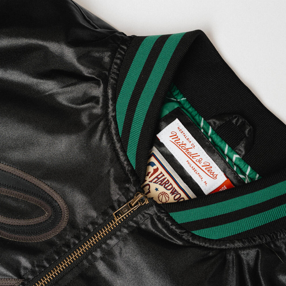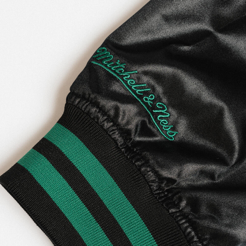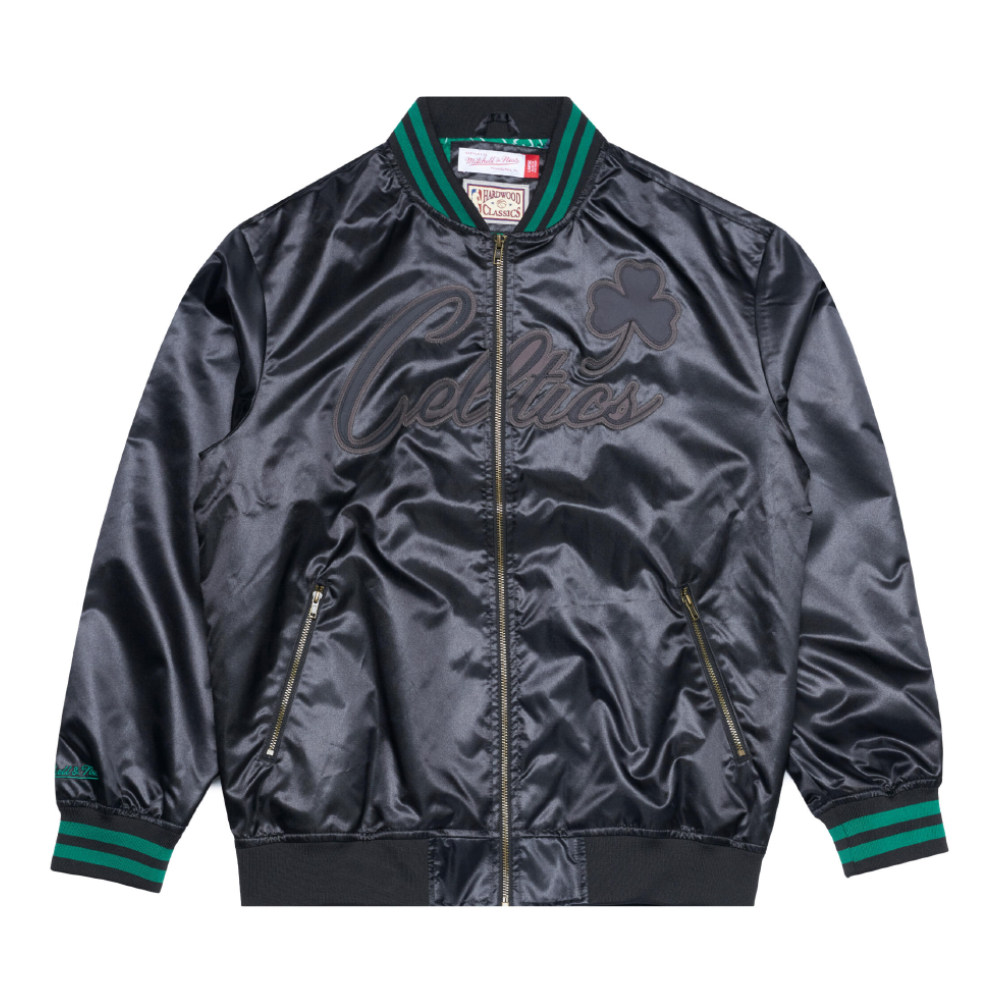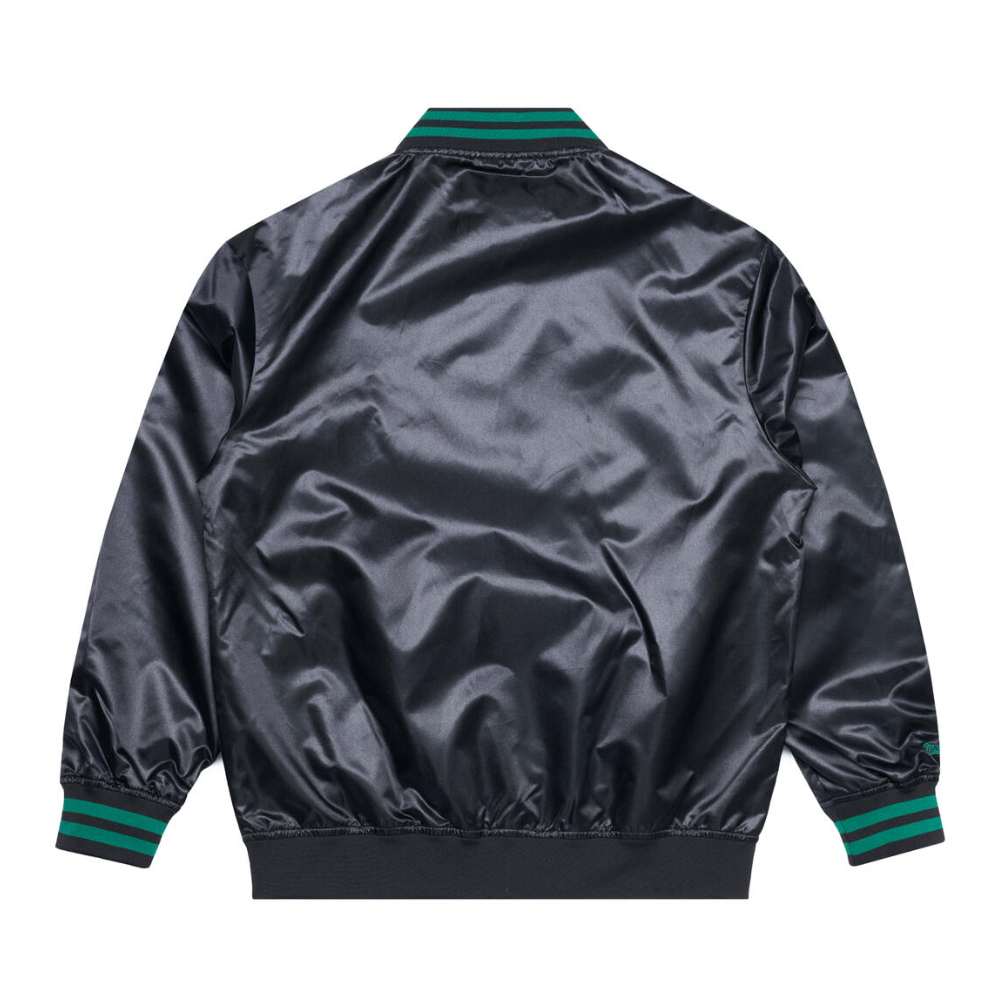 Step into vintage basketball heritage with a modern luxury twist. The Mitchell & Ness Stateside Pastel Bomber Jacket for the Boston Celtics delivers a premium satin finish in a deep charcoal tone, elevated with subtle pastel-inspired detailing.