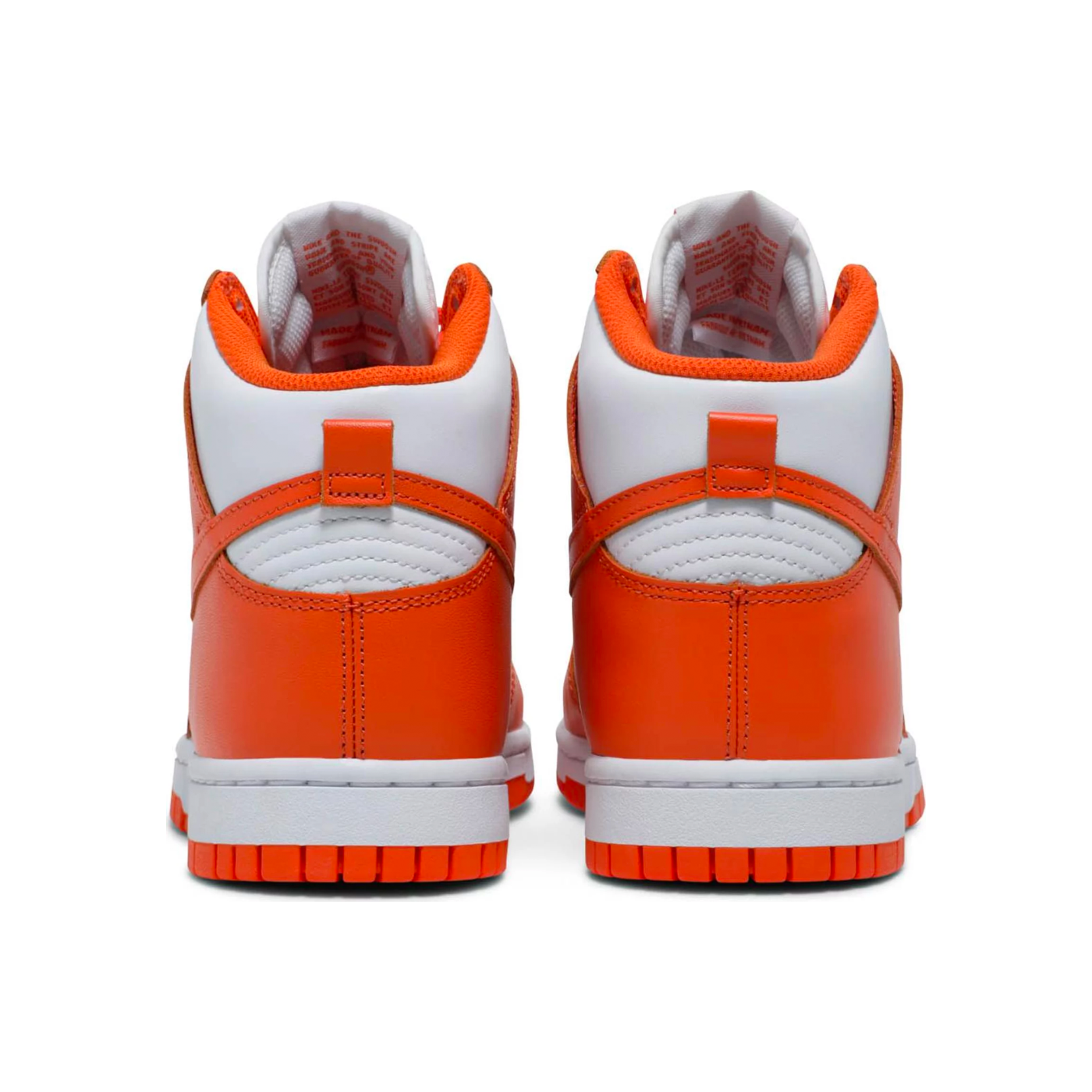 The 2021 iteration of the Nike Dunk High ‘Syracuse’ brings back one of the OG colourways of the ‘Be True to Your School’ series from 1985. The leather high-top is rendered in the signature hues of Syracuse University, featuring a crisp white base with contrasting Orange Blaze overlays. Classic Nike branding makes its way to a woven tag atop a lightly padded nylon mesh tongue. The high-top rides on a rubber cupsole, finished in the same two-tone colour scheme utilised on the upper.