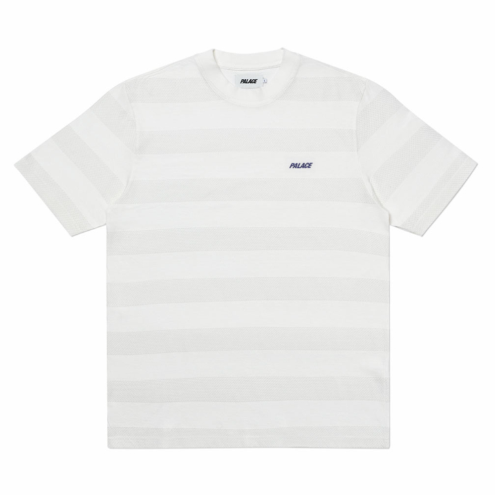 A small embroidered Palace logo sits on the left chest in contrasting navy, completing the refined aesthetic. Perfect for layering or solo wear, this piece blends everyday comfort with elevated simplicity.