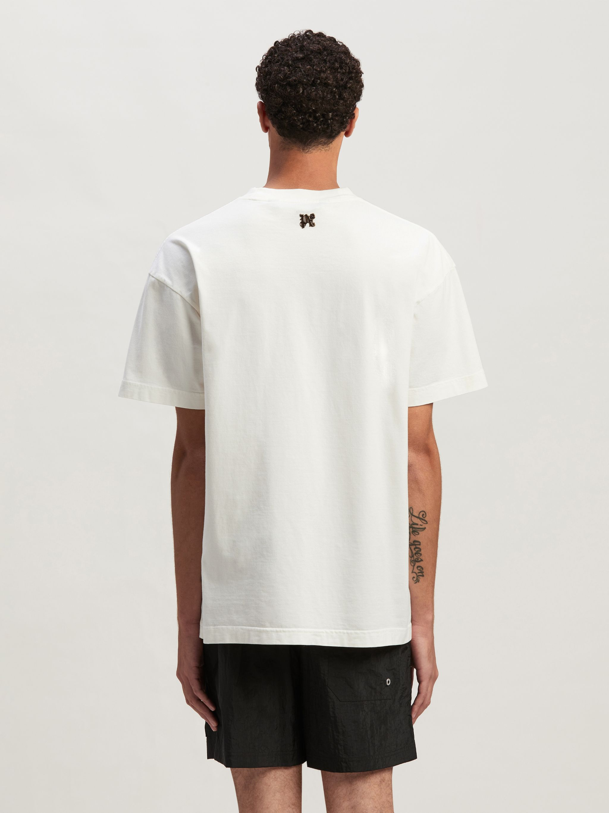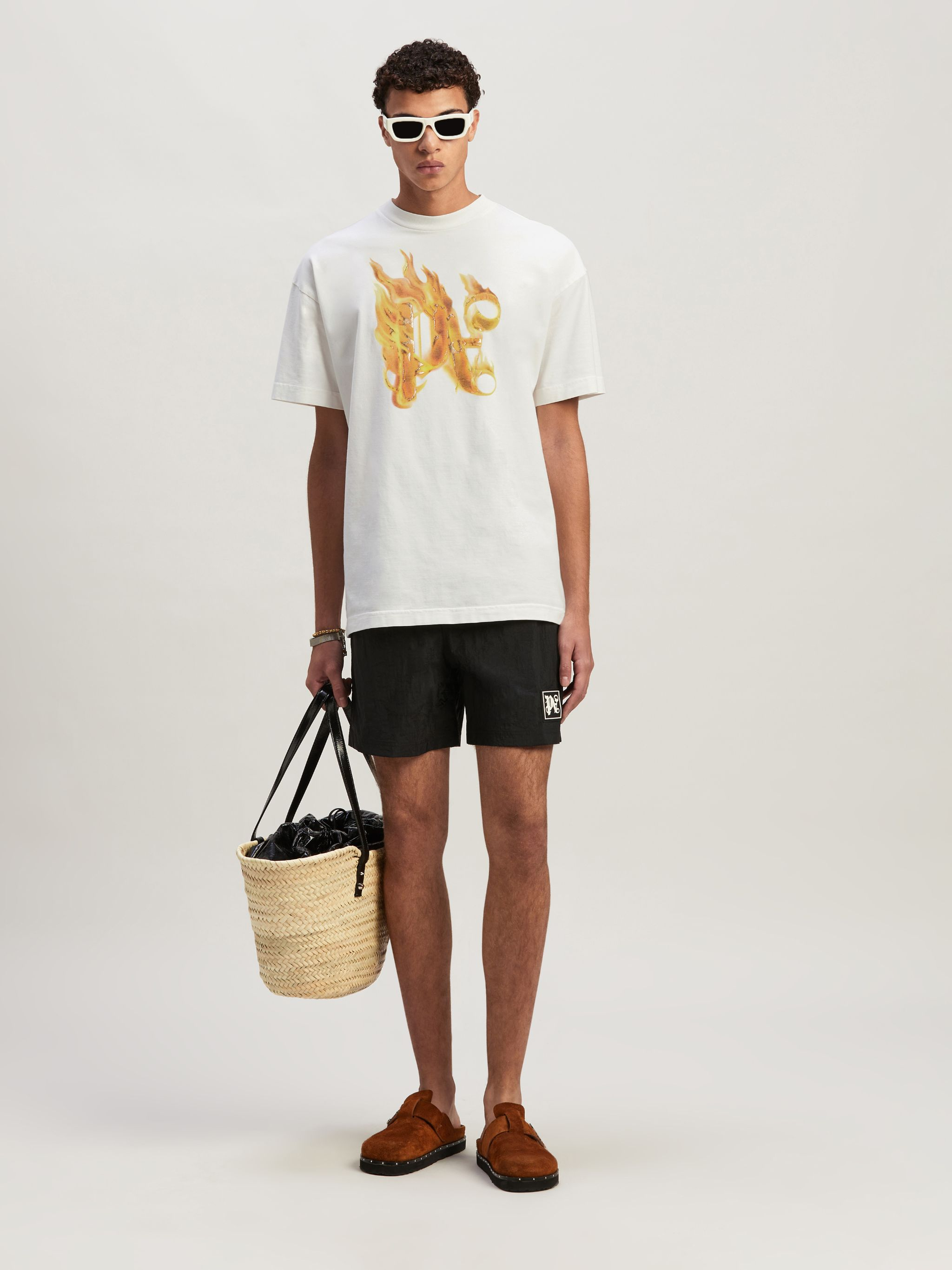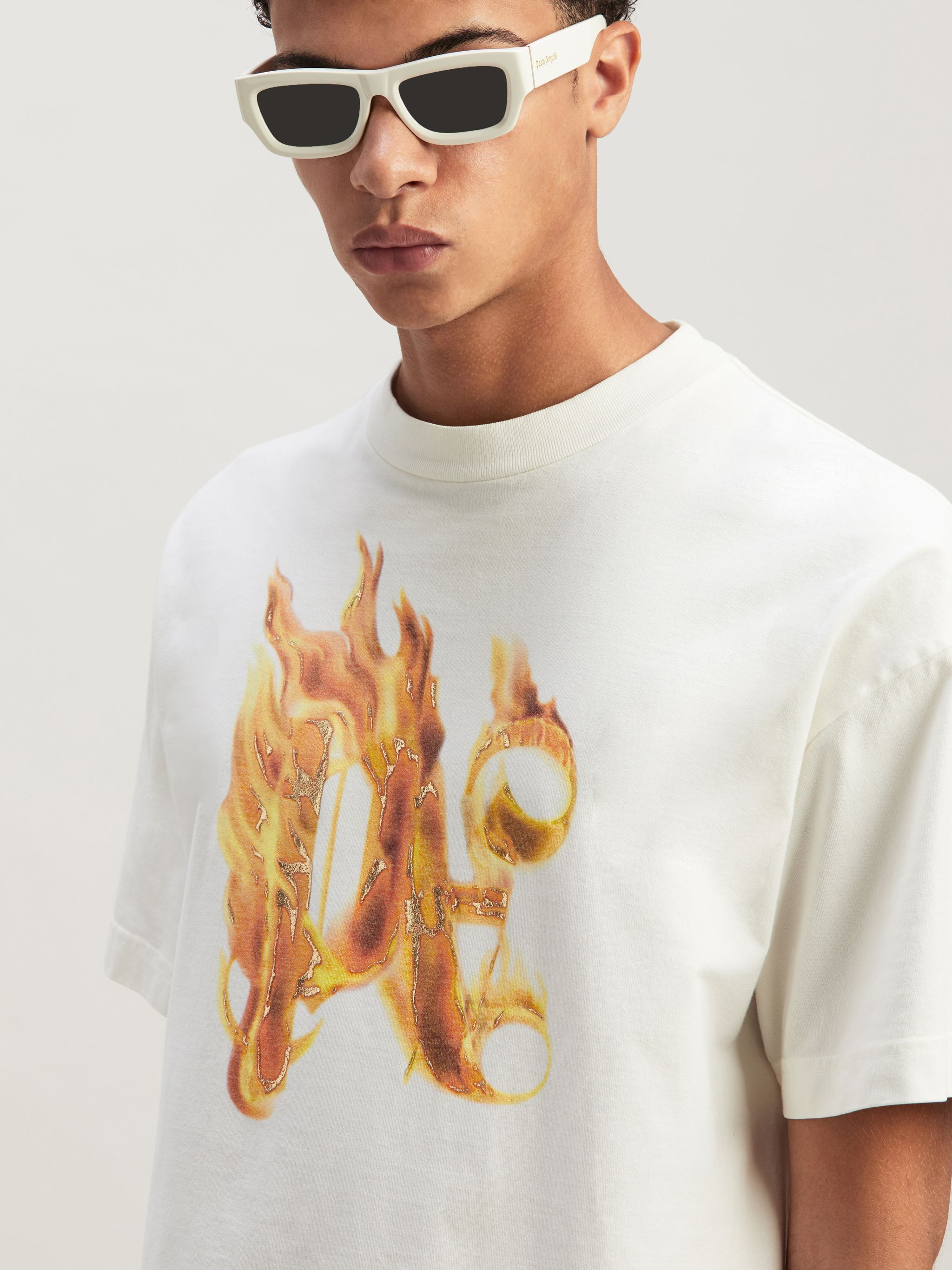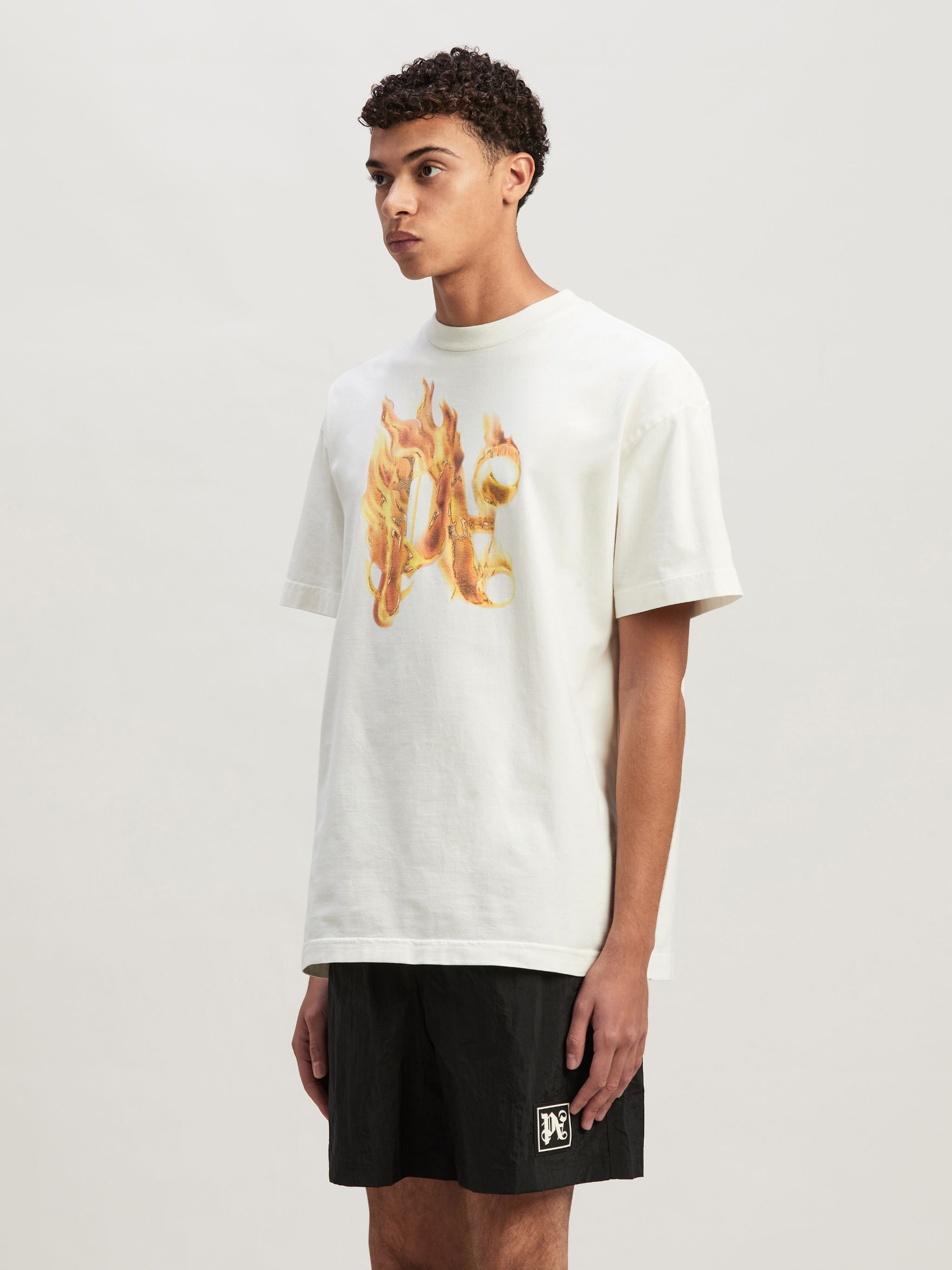 The flaming PA Monogram Print at the front of this white cotton T-Shirt is inspired by a photo of a burning palm tree taken by Palm Angels’ founder – it was included in the book published to launch the brand.