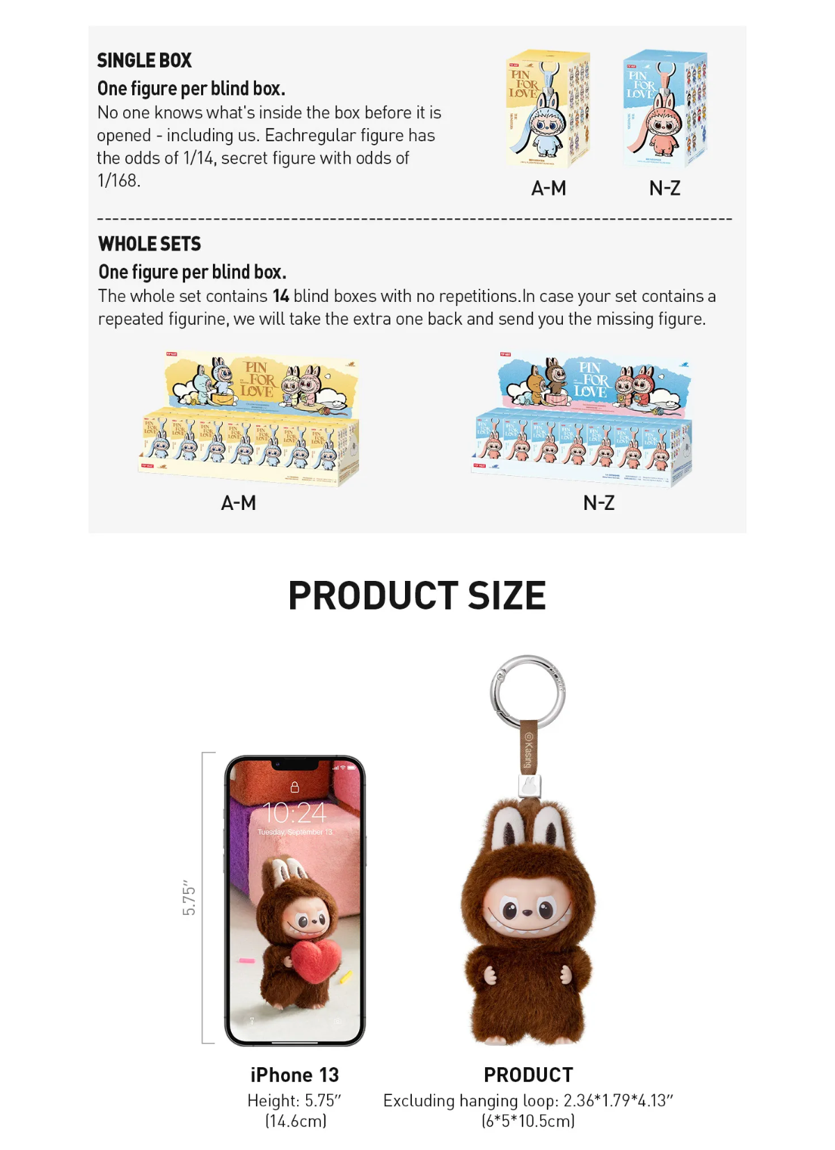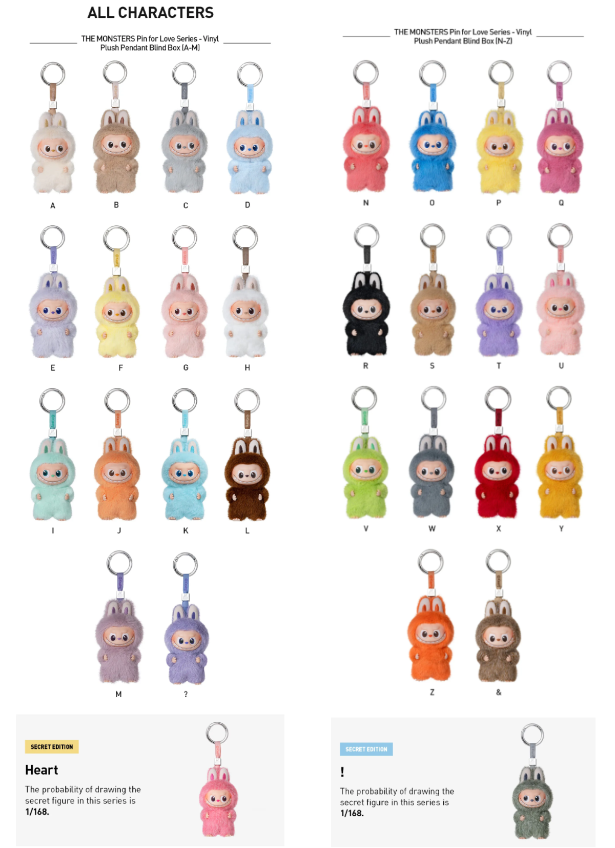 Every pendant blends soft plush with a durable vinyl shell for a tactile finish that feels ready for daily wear on bags, keys, and phone straps. The sealed case includes fourteen blind boxes from the A to M assortment, and there is a secret chase that nods to the theme of love for collectors who enjoy the hunt. At roughly hand sized with detailed stitching and painted features, these minis carry a lot of personality in a small format without losing Labubu’s storybook edge.