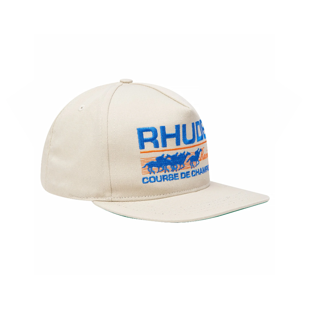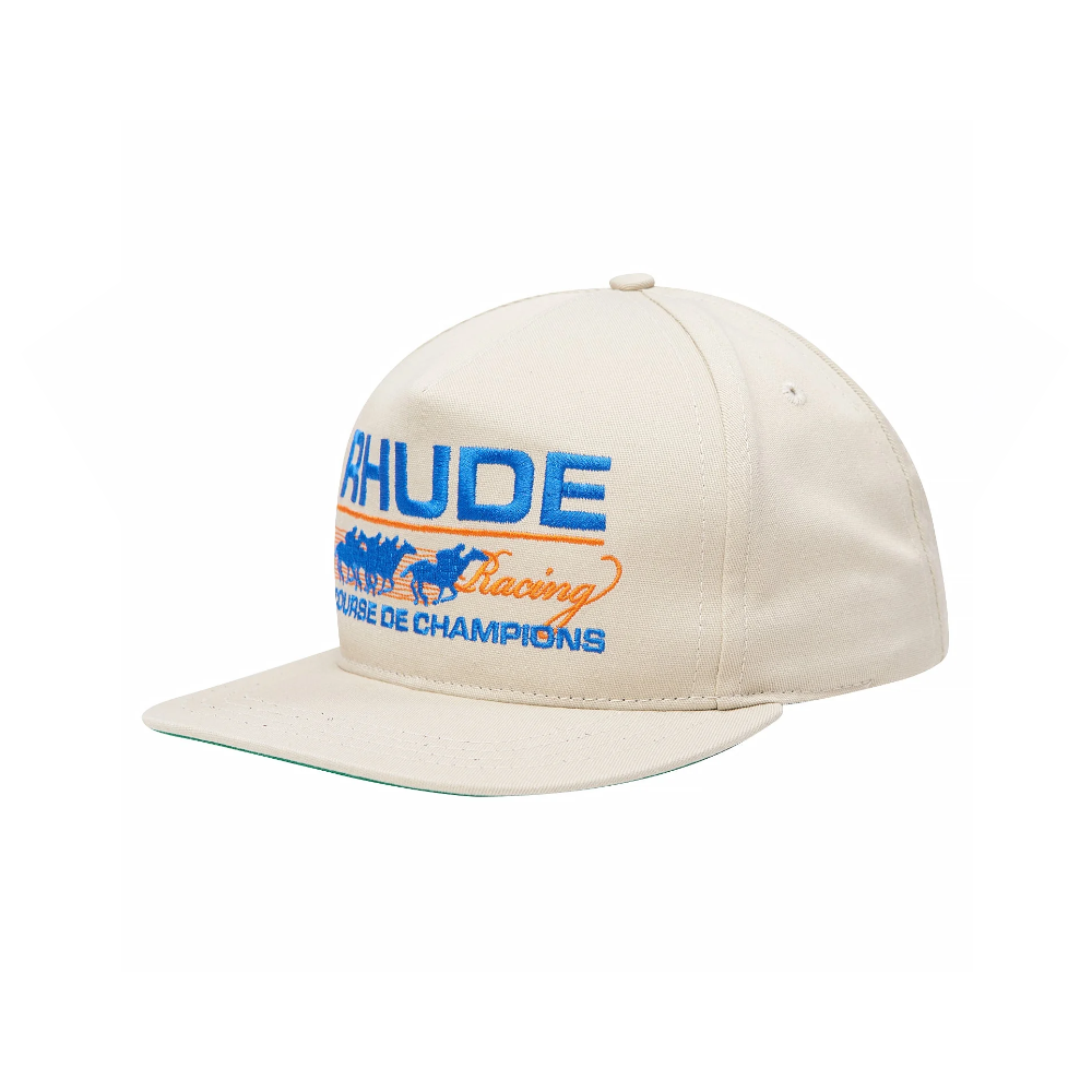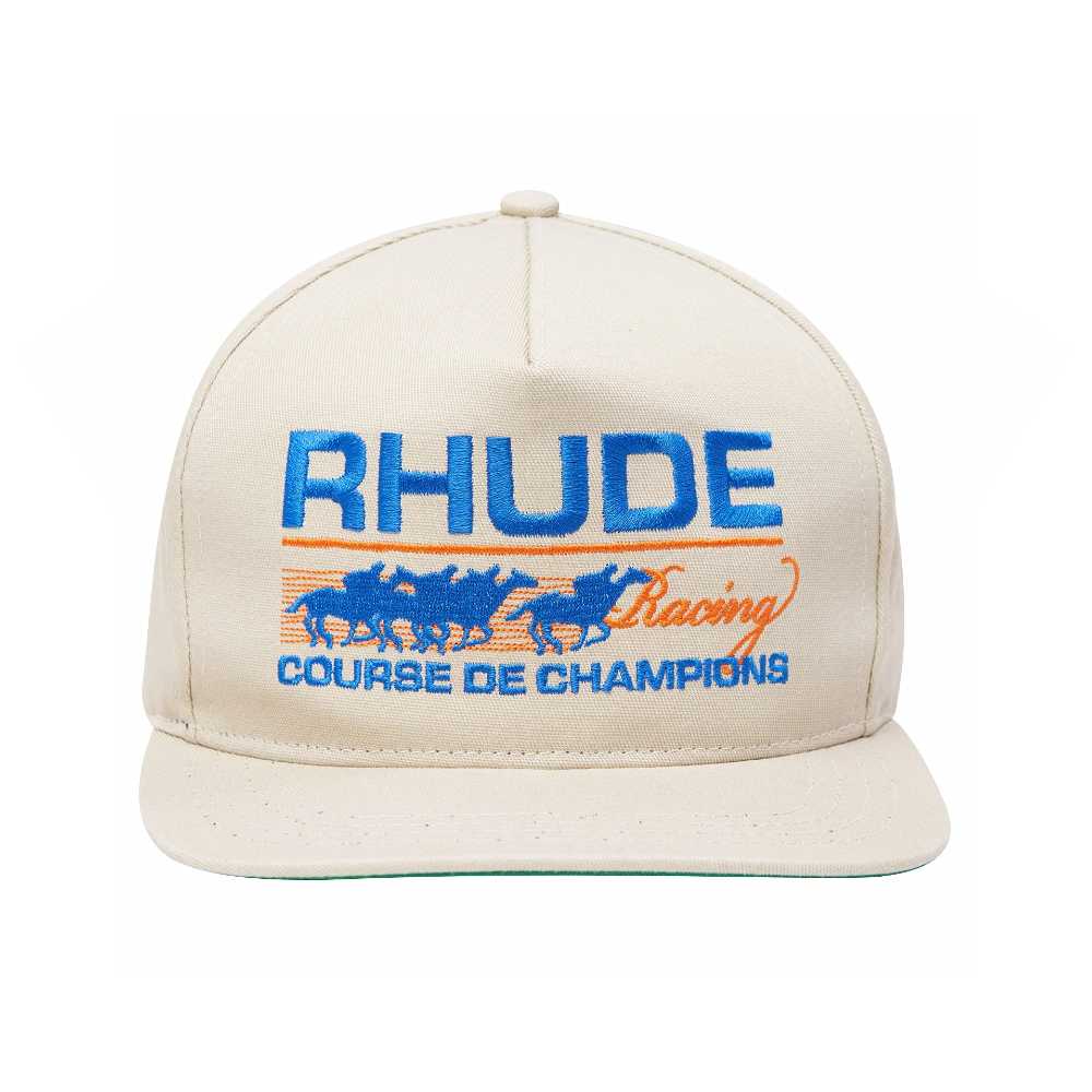 This heavyweight Course De Champions Hat from Rhude is the latest addition to the brand’s headwear line. The structured hat features Rhude embroidery across the front, a flat brim + an adjustable strap at the back for a variety of sizes. Made from cotton, the design is the perfect addition to any collection.