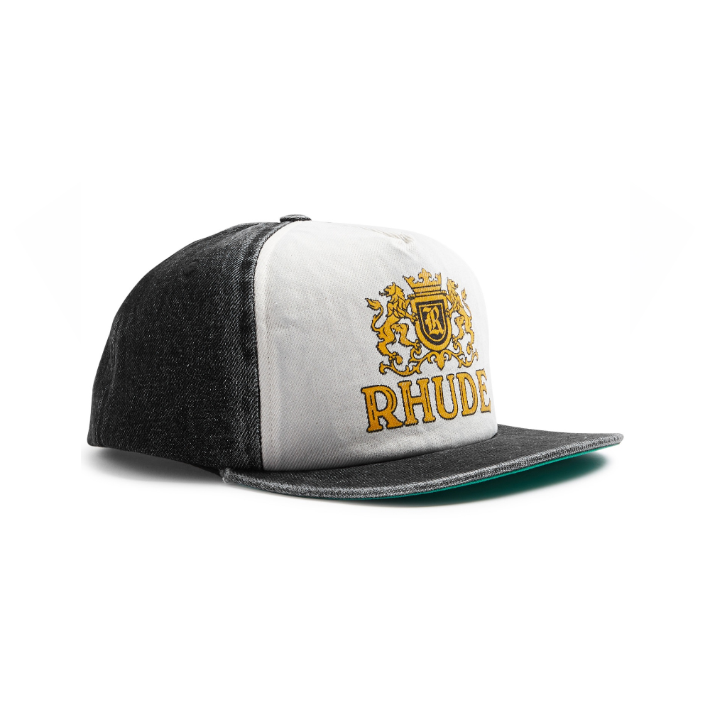 Paneled non-stretch denim and padded polyester- and cotton-blend twill cap in black and off-white.