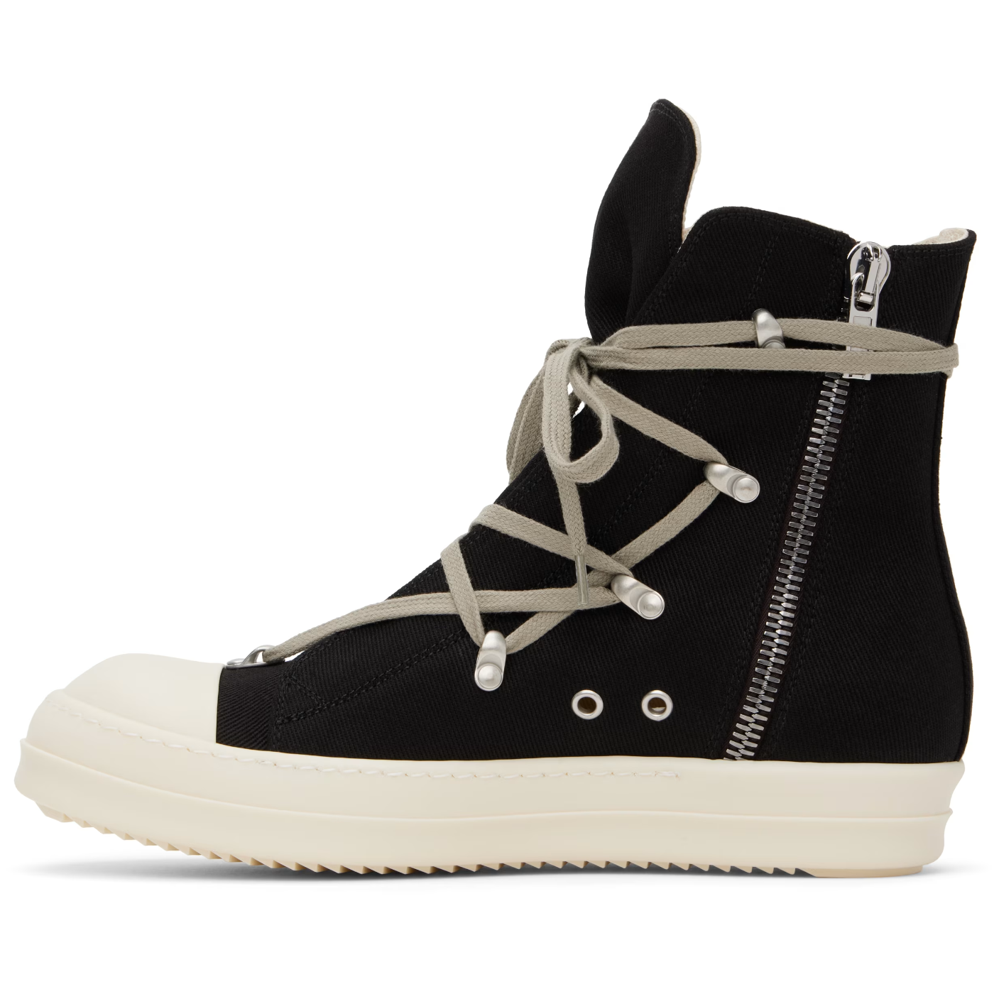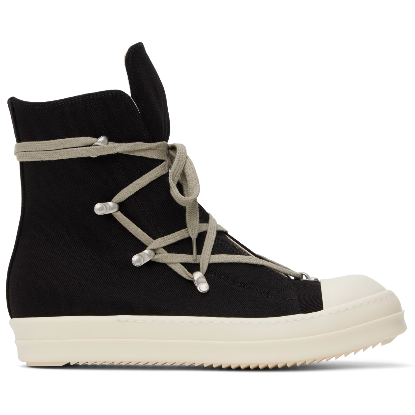 Rick Owens streetwear diffusion line DRKSHDW always shows off subversive sneakers that are ideal for styling with the rest of the collection. This time there’s the Hexa high top pair. Fairly pared back with minimal black canvas uppers and chunky serrated outsoles, they’re made avant-garde thanks to edgy contrast lacing which creates a pentagram shape.