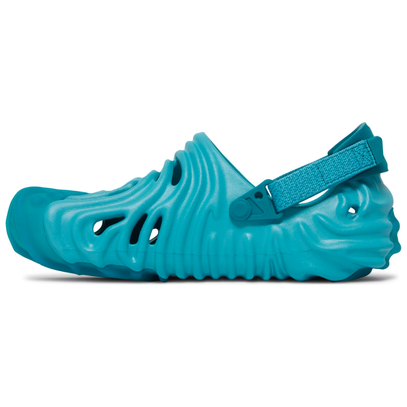 The Salehe Bembury x Crocs Pollex Clog ‘Tide’ showcases a bright blue finish on the molded foam upper, covered in a series of concave ridges shaped in the form of the footwear designer’s fingerprints. Ventilation ports along the forefoot offer enhanced breathability, while a pivoting dual-branded heel strap delivers a secure, comfortable fit. Underfoot, the ridged outsole features durable semi-translucent rubber that wraps up the toe and heel.